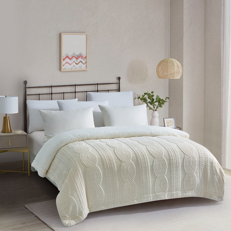 商品名称:巴木赫 2024新款8字配色双层羊羔绒毛毯 白色
