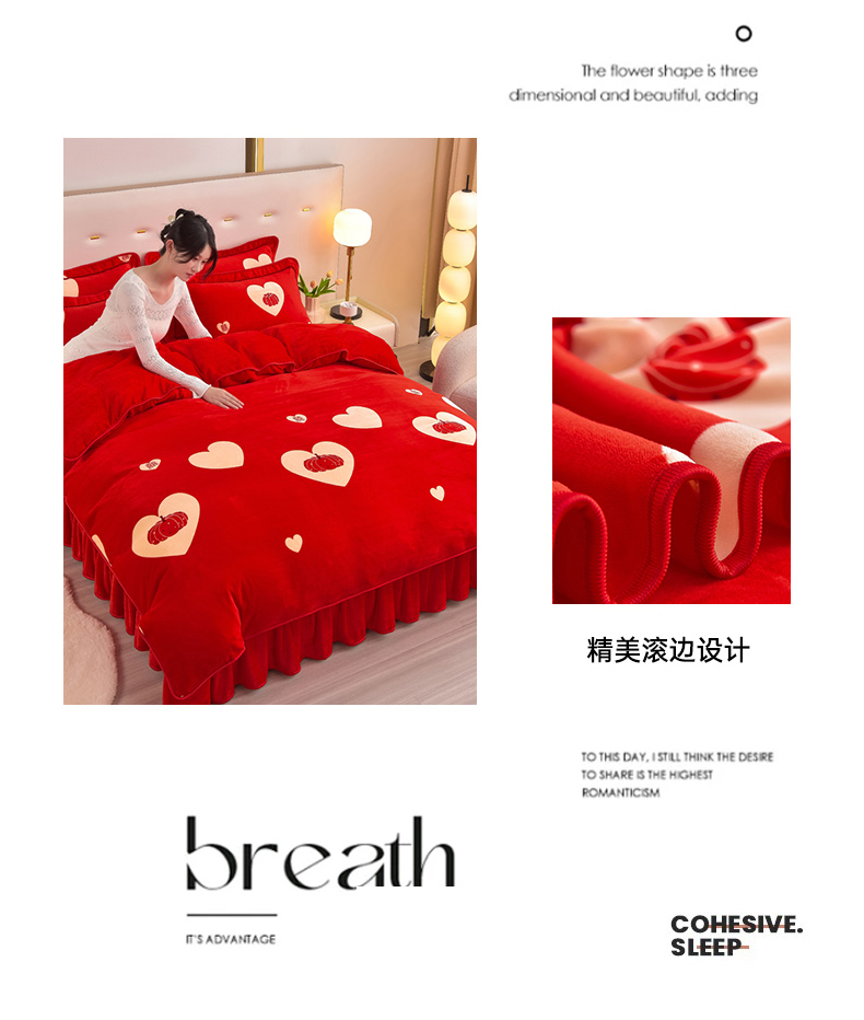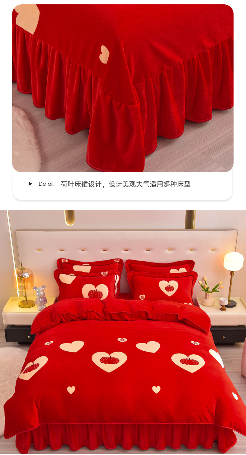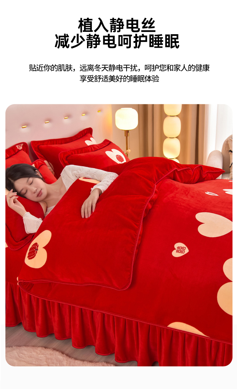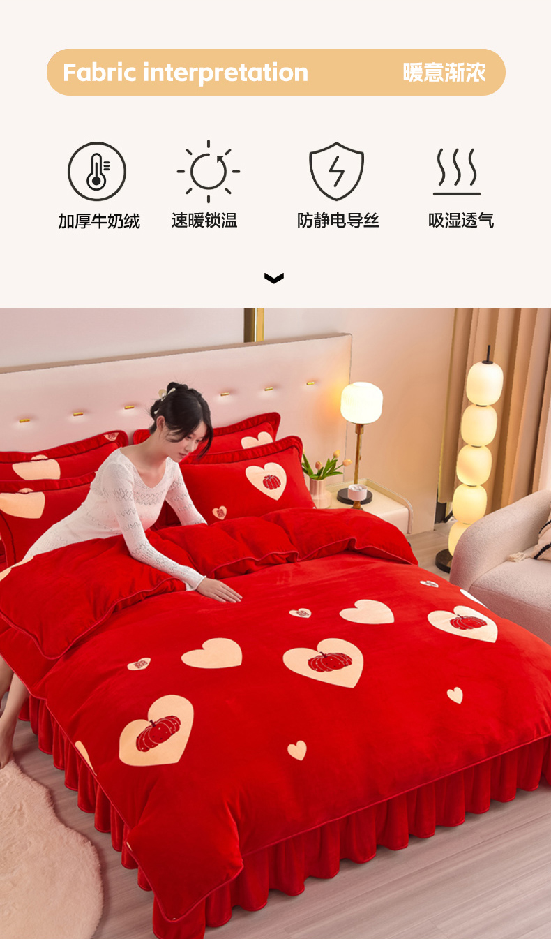 晚静家纺 2024新款8.5斤牛奶绒金貂法莱绒床裙款保暖绒四件套 杏运小花,杏运小花