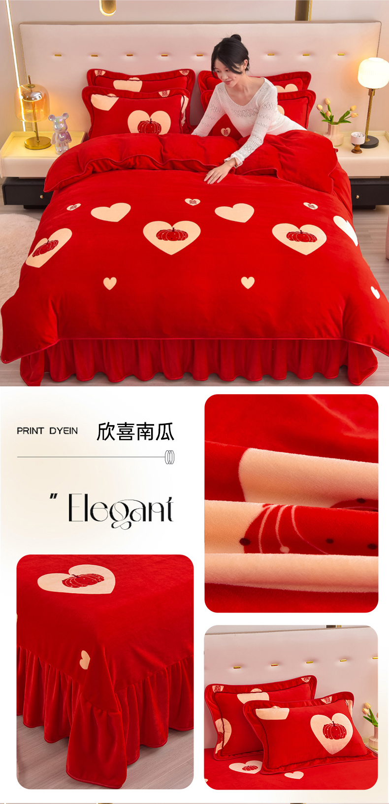 商品名称:晚静家纺 2024新款8.5斤牛奶绒金貂法莱绒床裙款保暖绒四件套 欣喜南瓜
