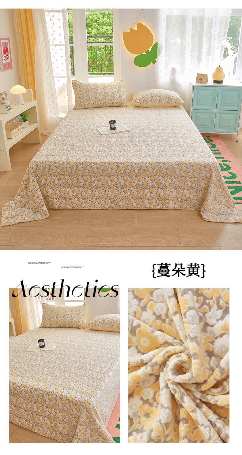 菡宝 2024新款雕花绒230g全消光牛奶绒四件套及单品 - 单床单 蔓朵蓝