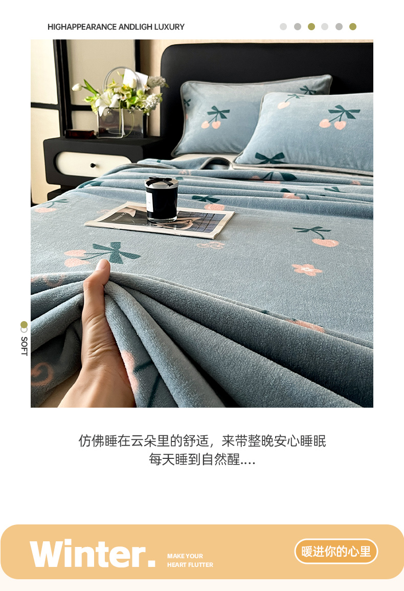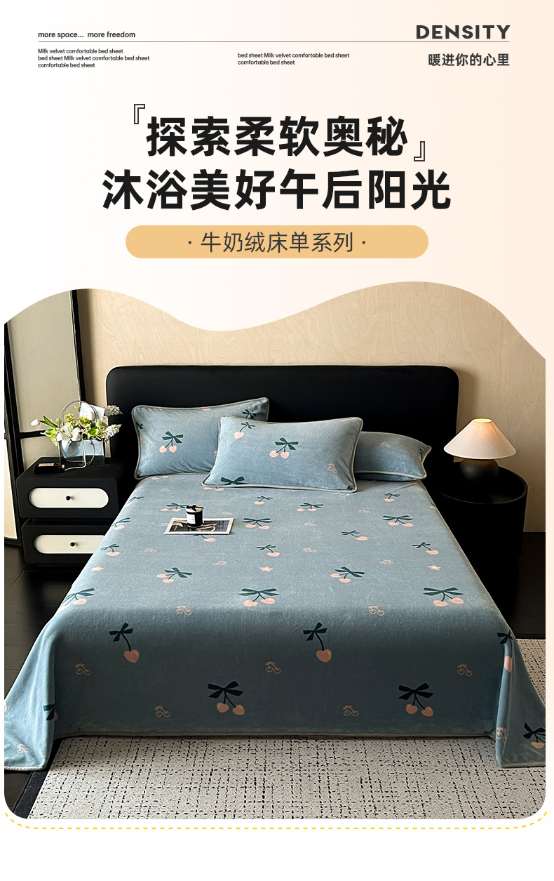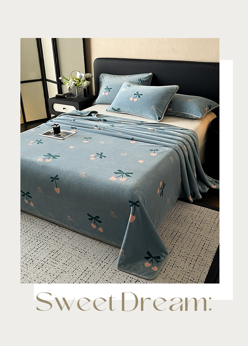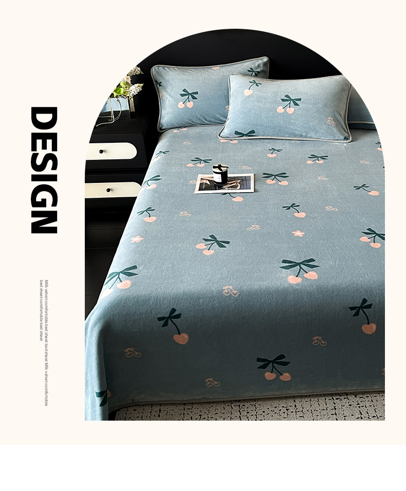 商品名称:全季家居 2024新款A类纯色印花高克重加厚保暖包边牛奶绒床单单件 小樱桃