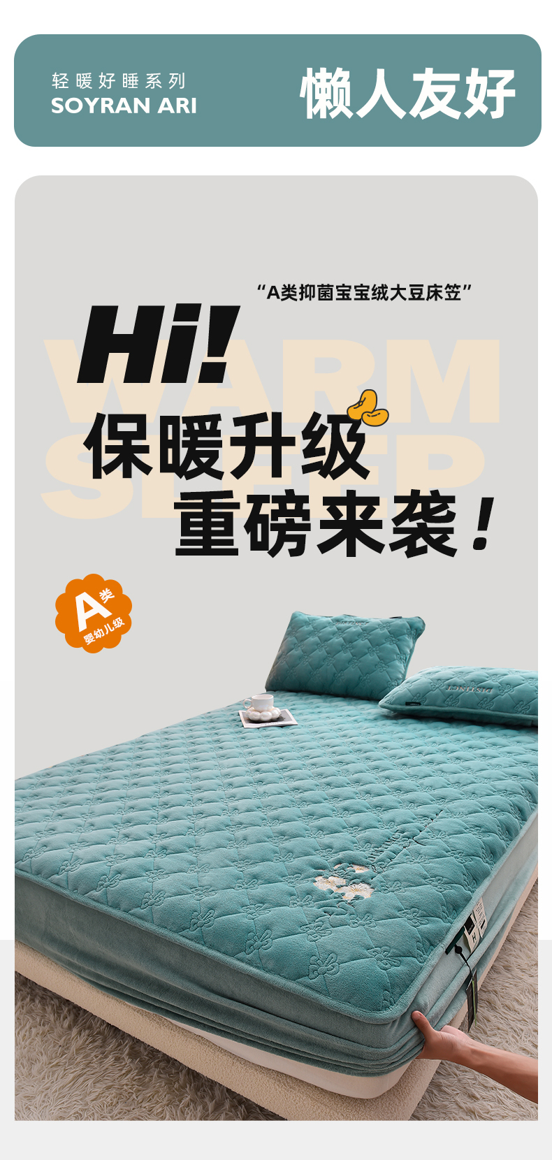 • 91家纺网 家纺一手货源 找家纺 (总)好眠好梦家纺 2025新款全棉50S夹棉抗菌防螨床笠-棉生活系列,白色,粉色,卡其,深灰,天蓝,烟灰