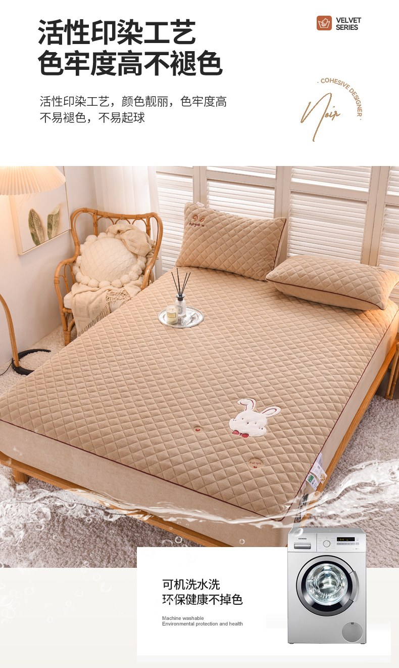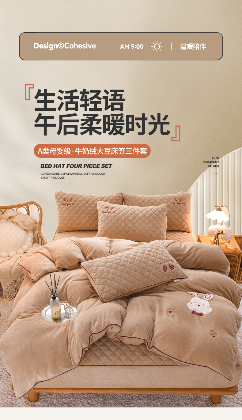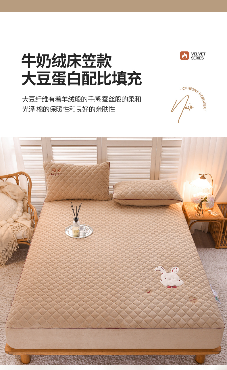 当前位置: 91家纺网 > 商品网购 > 床品套件 > 四件套 > 牛奶绒四件套 > 好眠好梦家纺 2024新款叮当兔牛奶绒绣花床笠款四件套 奶咖