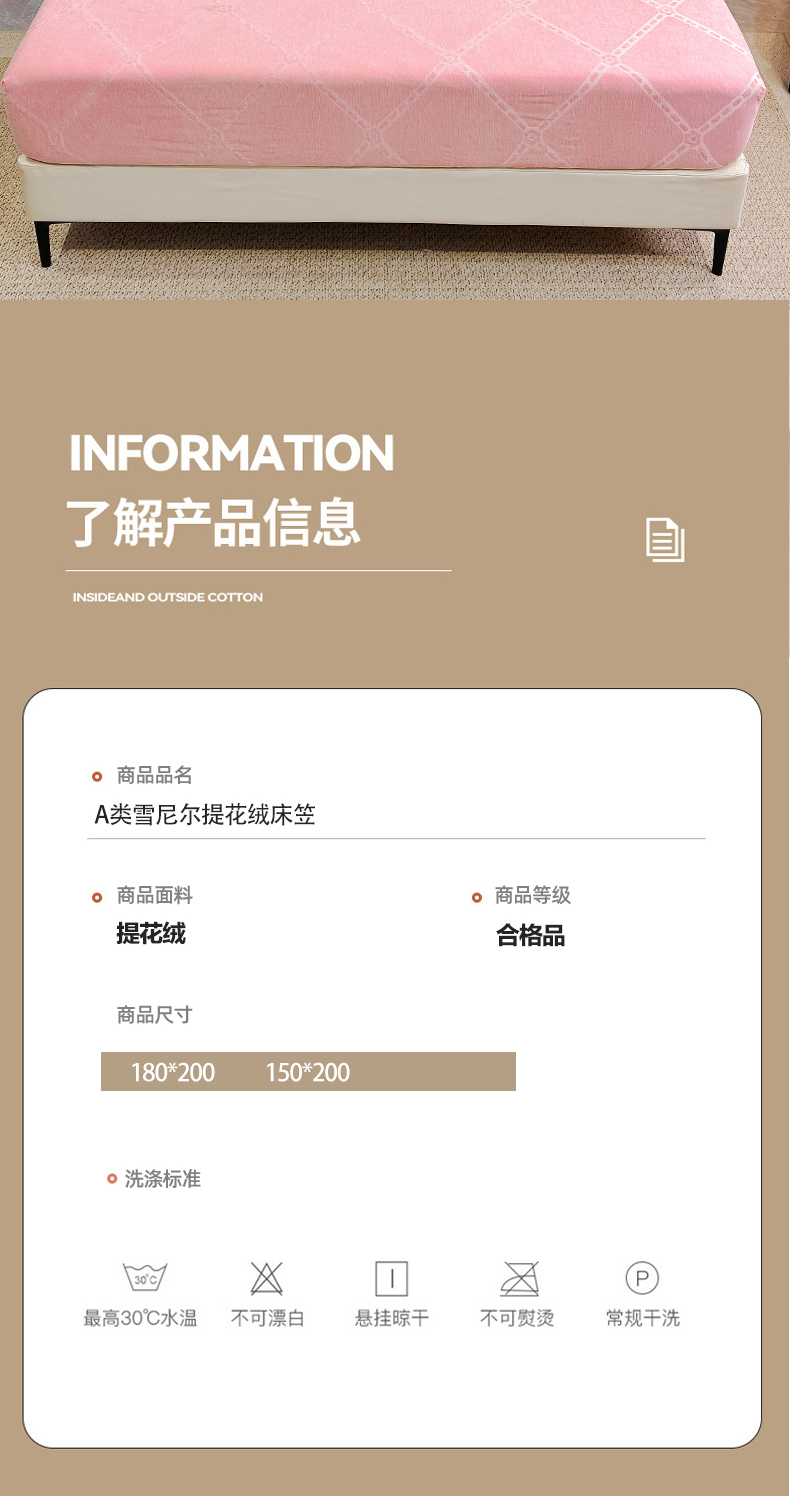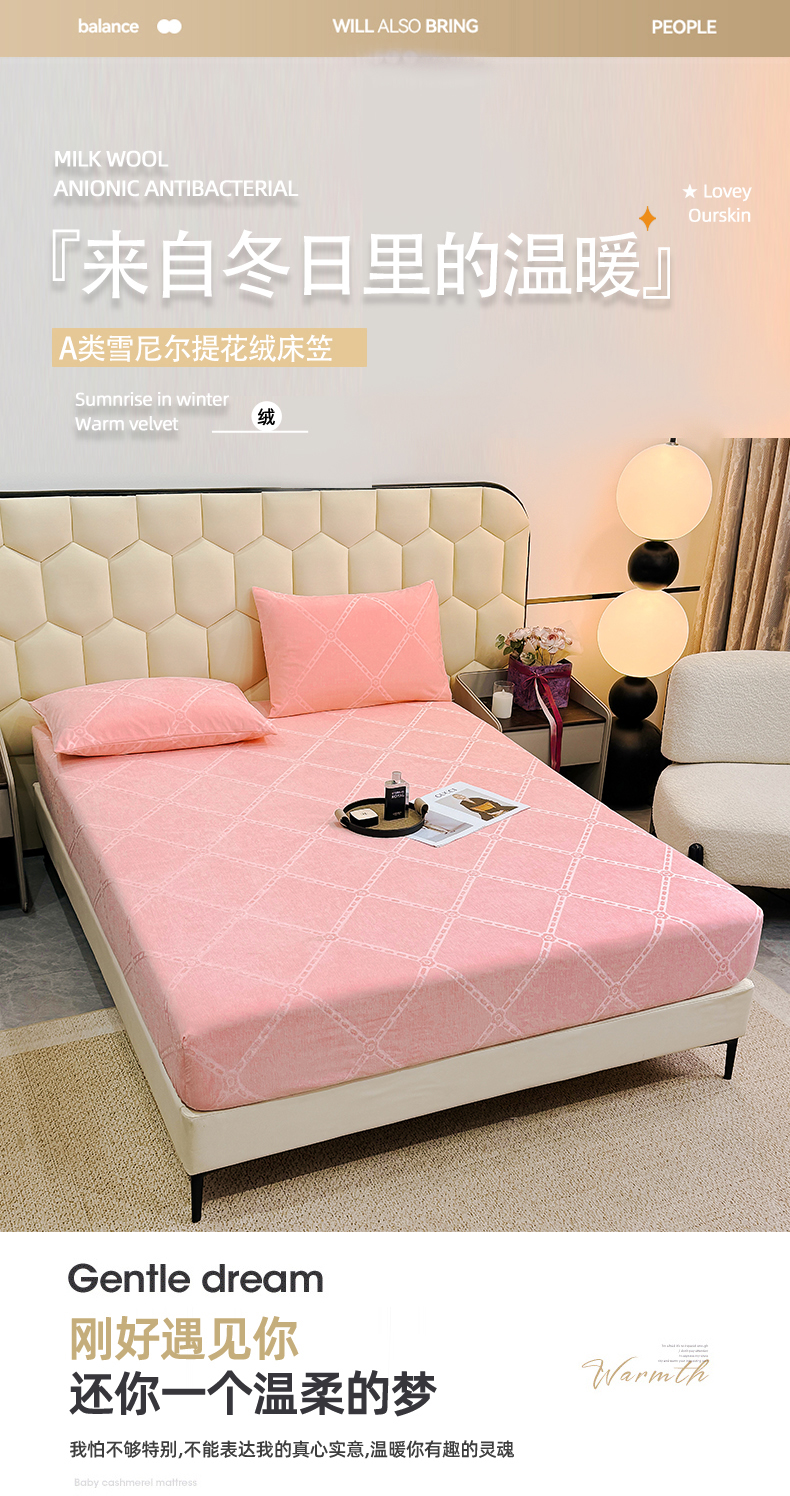 商品名称:太阳树家纺 2025新款A类雪尼尔提花绒床笠 安东尼-粉