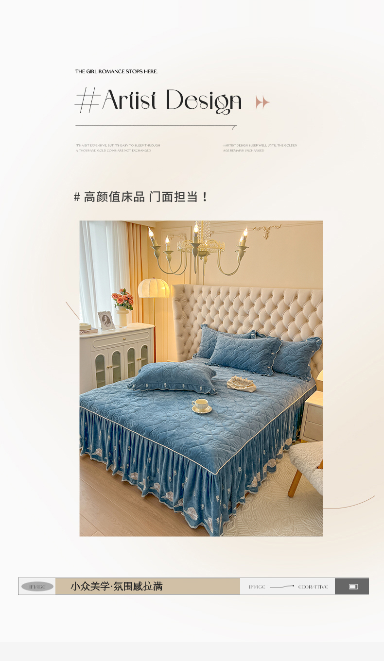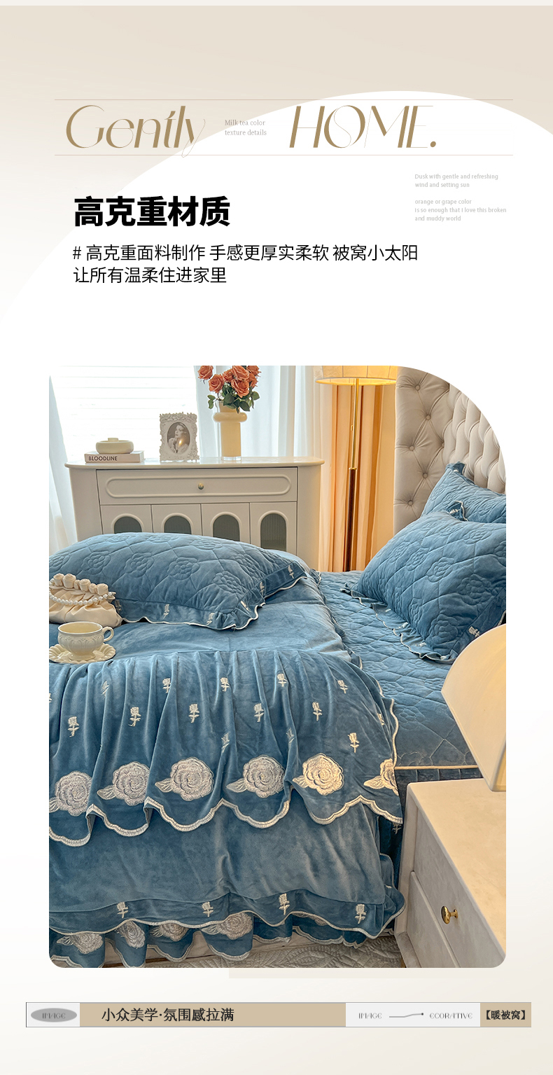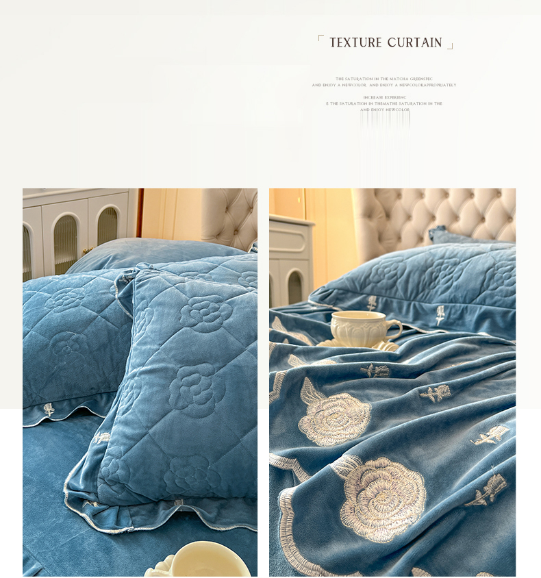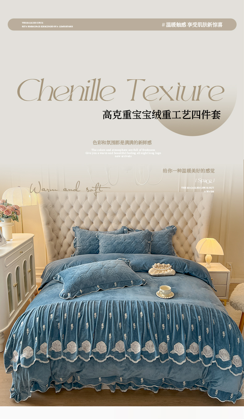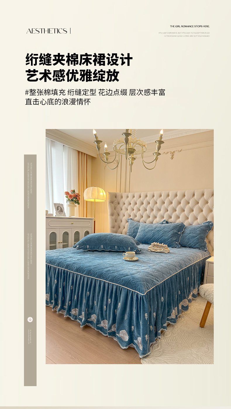 当前位置: 91家纺网 > 商品网购 > 床品套件 > 四件套 > 宝宝绒四件套 > 麒豆豆 2024新款宝宝绒床裙四件套-晨曦玫瑰 晨曦玫瑰-品蓝