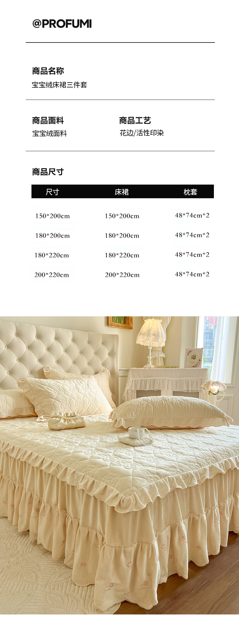商品名称:麒豆豆 2024新款宝宝绒床裙三件套-乐伊 乐伊-米