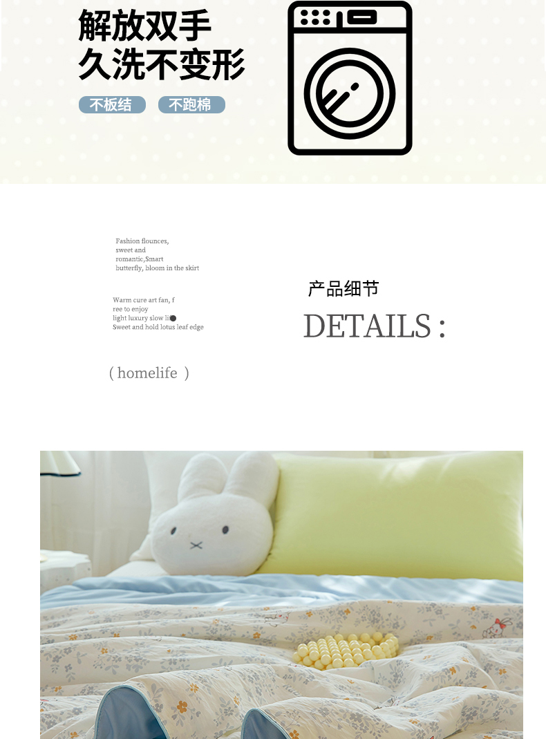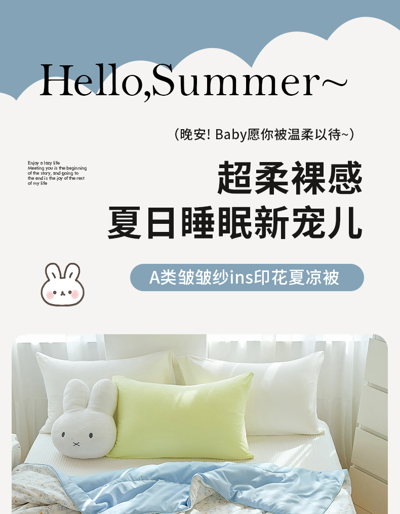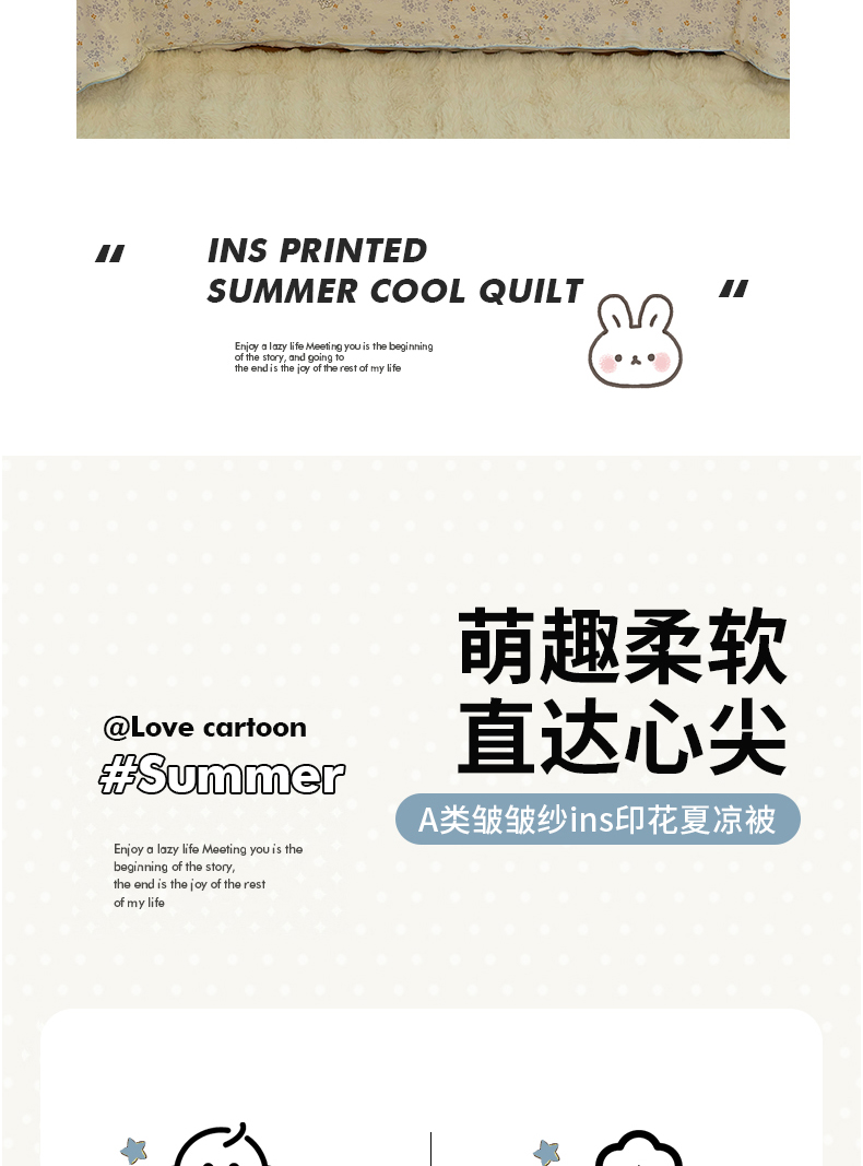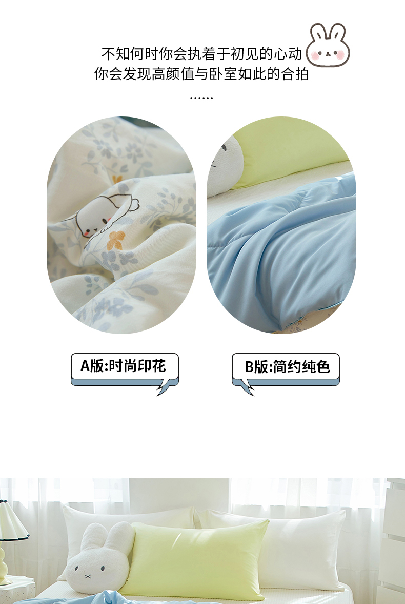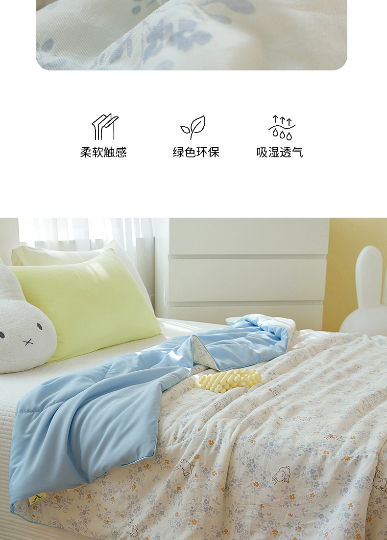 商品名称:梦恬佳 2025新款A类水洗皱皱棉夏凉被 繁花兔兔