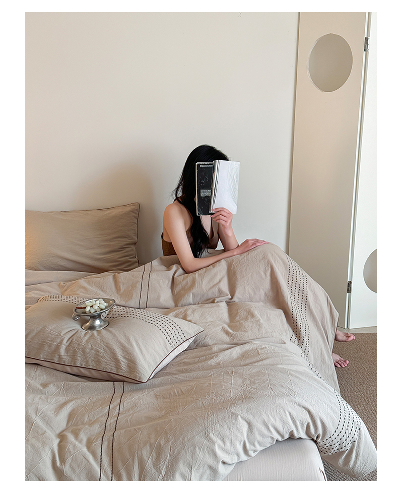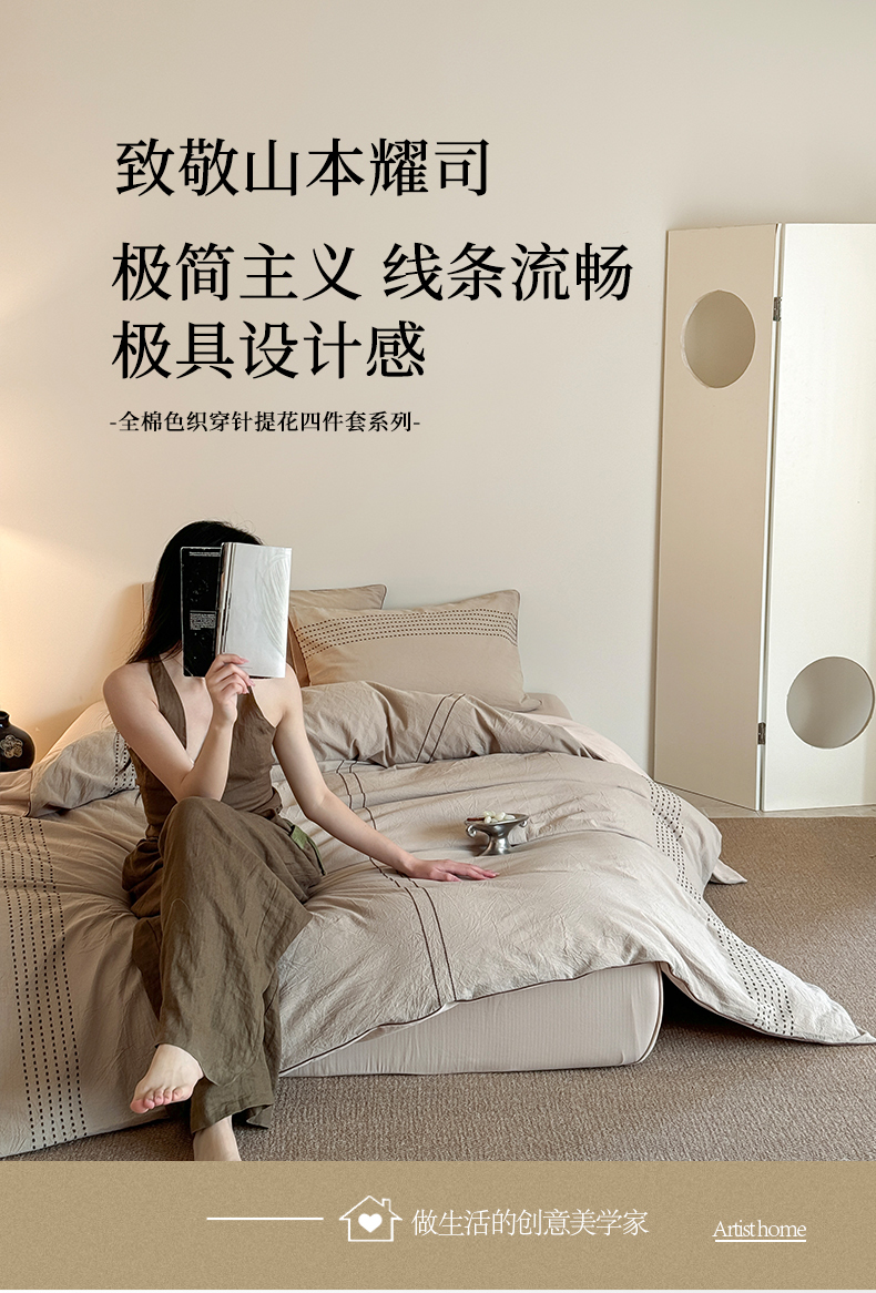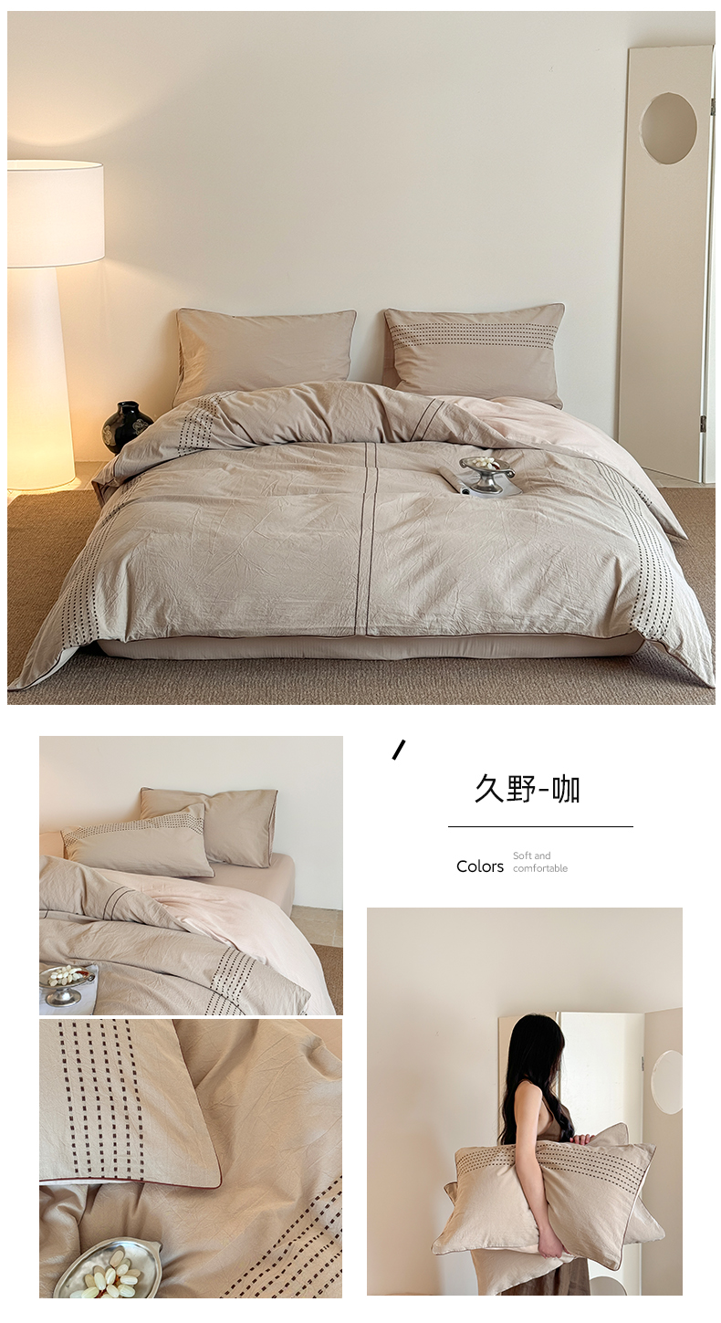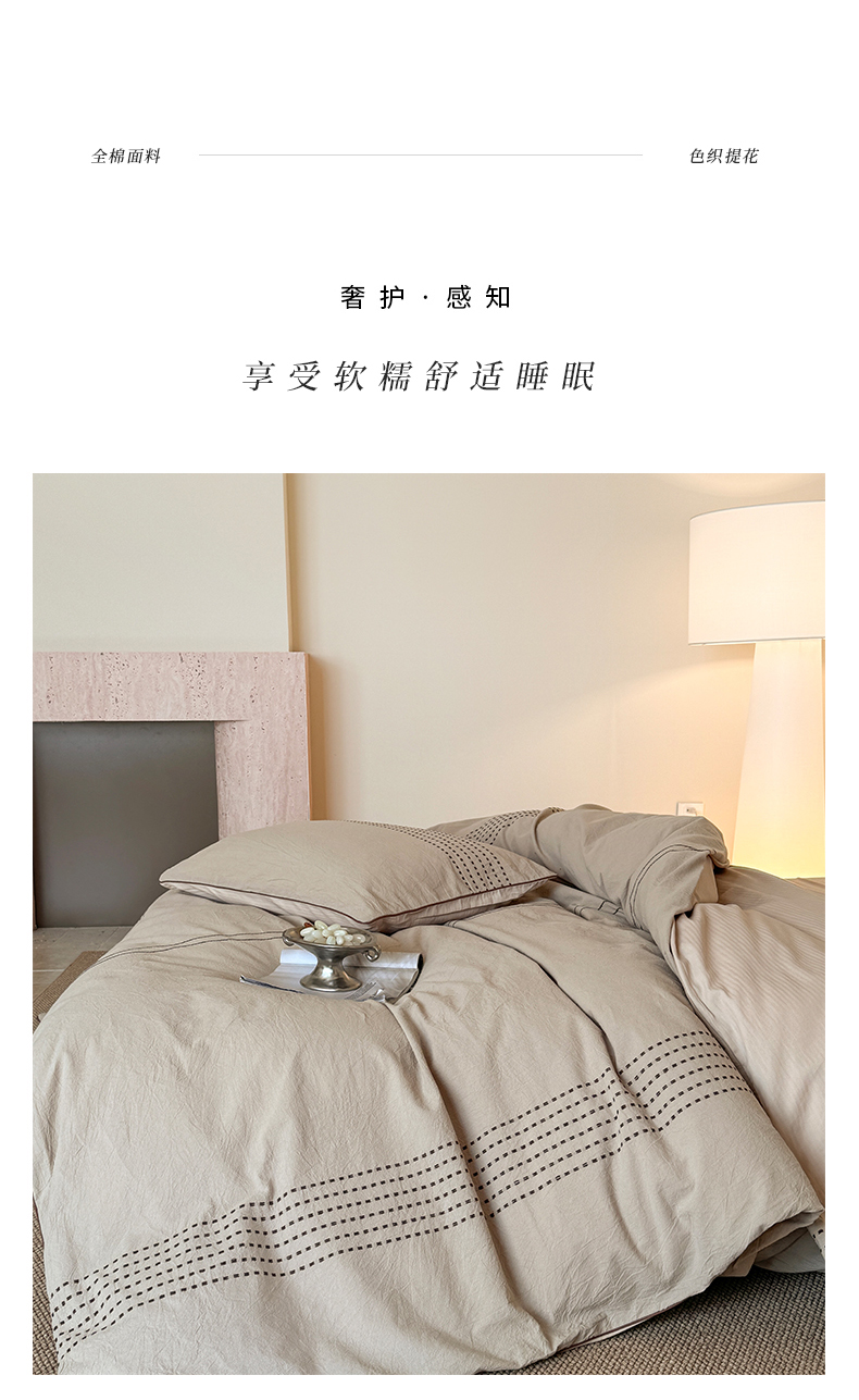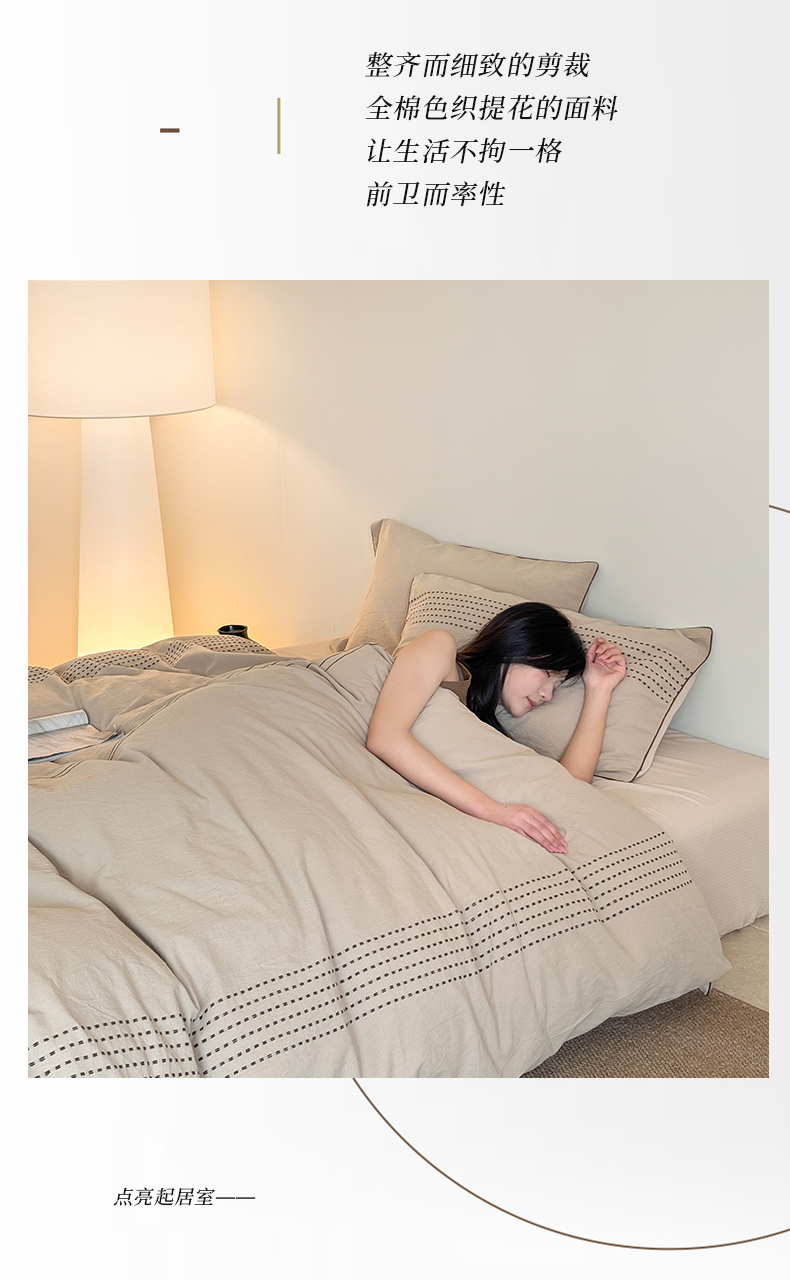 山舍家居 2025新款全棉色织穿针提花四件套-久野 久野-咖