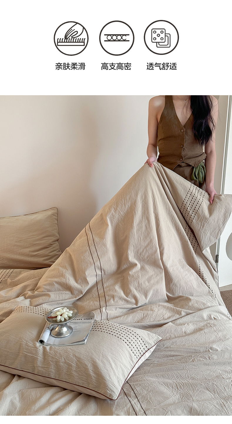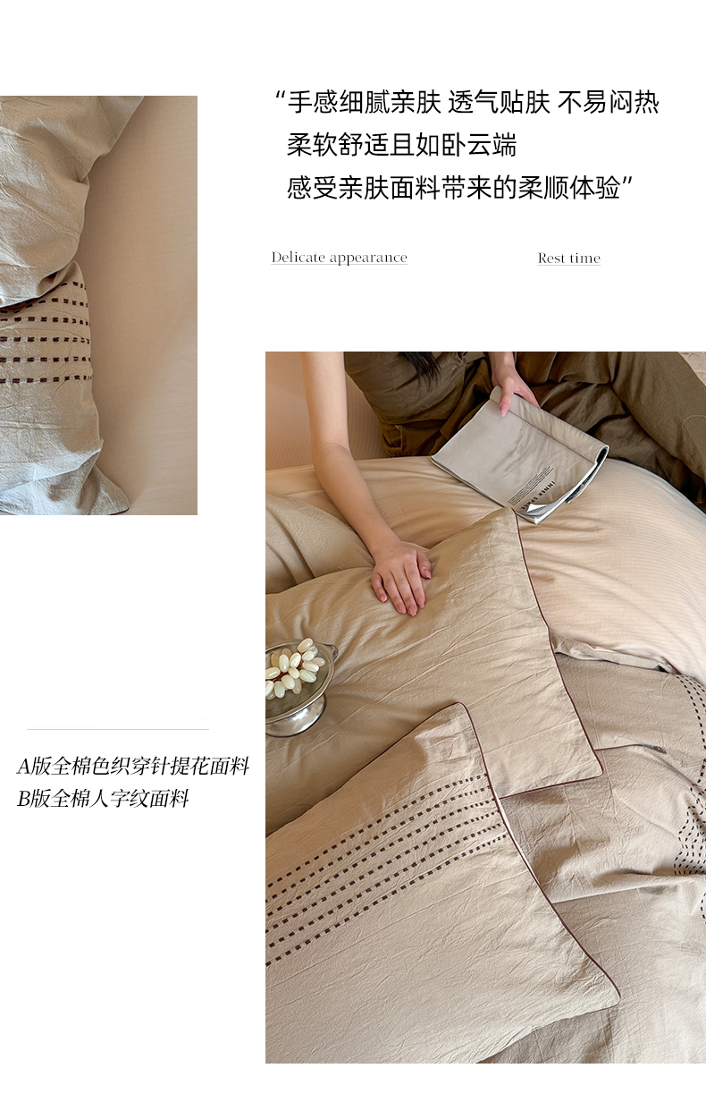 商品名称:山舍家居 2025新款全棉色织穿针提花四件套-久野 久野-咖