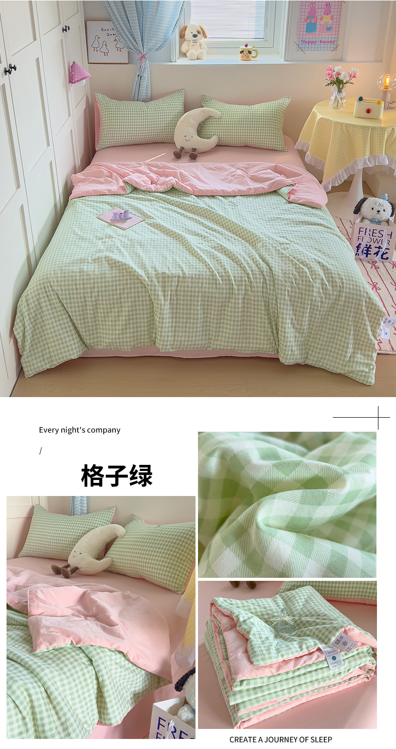 被子 > 夏被 > N先生+V 13814689556 发大图/买家秀 2025新款云朵棉皱皱纱夏被夏凉被空调被 格子绿