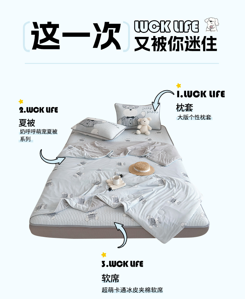 • 91家纺网 家纺一手货源 找家纺 RYB红黄兰 2025新款INS原创超萌卡通锦氨冰皮夏被夏凉被空调被 面包熊仔