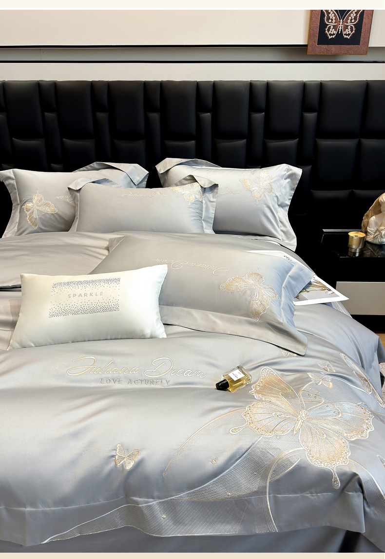 星蕴家纺 2025新款新疆贡缎全棉刺绣宽边四件套-黛尔【高档礼盒包装】,黛尔-白拼玉,黛尔-繁星蓝,黛尔-浅香槟,黛尔-雅灰粉