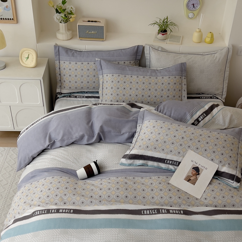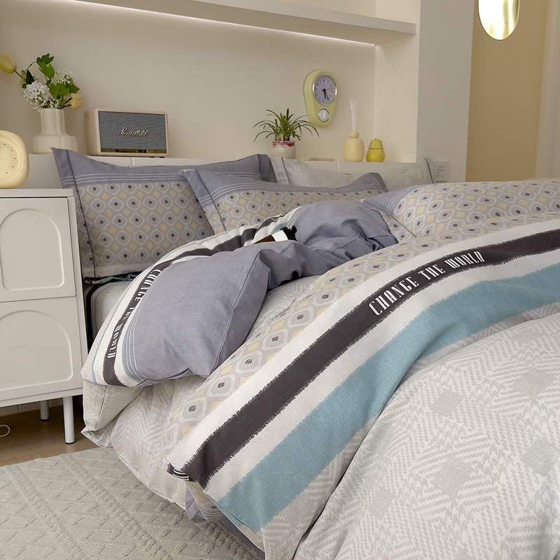 当前位置: 91家纺网 > 商品网购 > 床品套件 > 四件套 > 全棉普通四件套 > 优品阁 2024新款亲肤舒适全棉磨毛四件套学生三件套系列 摩登气息-灰