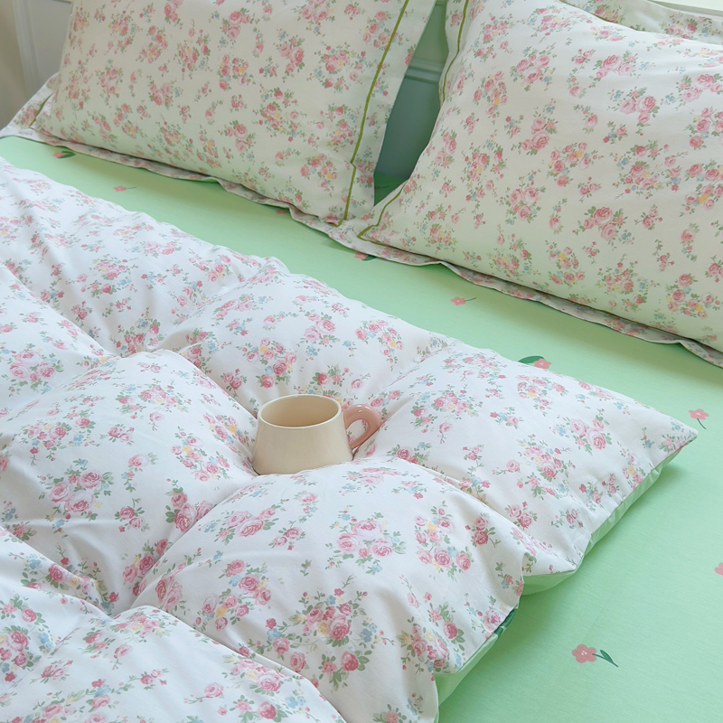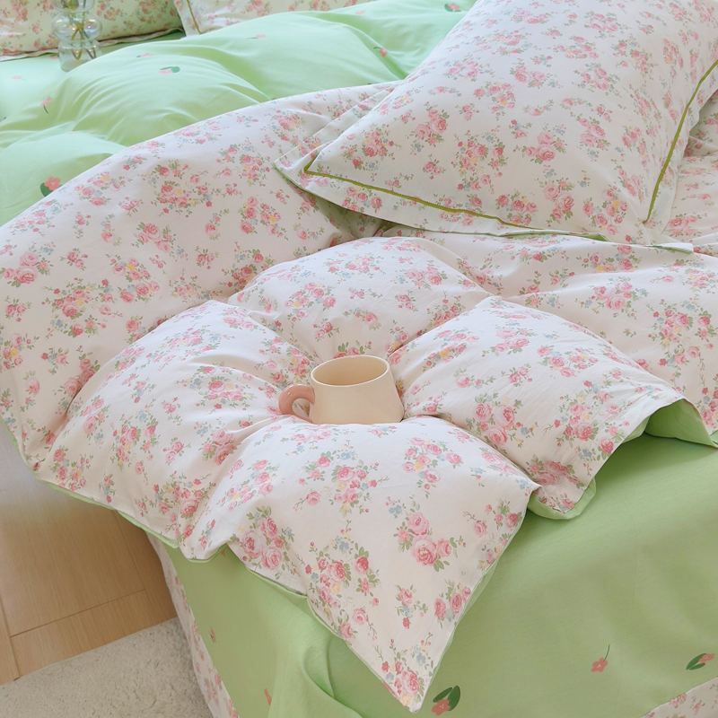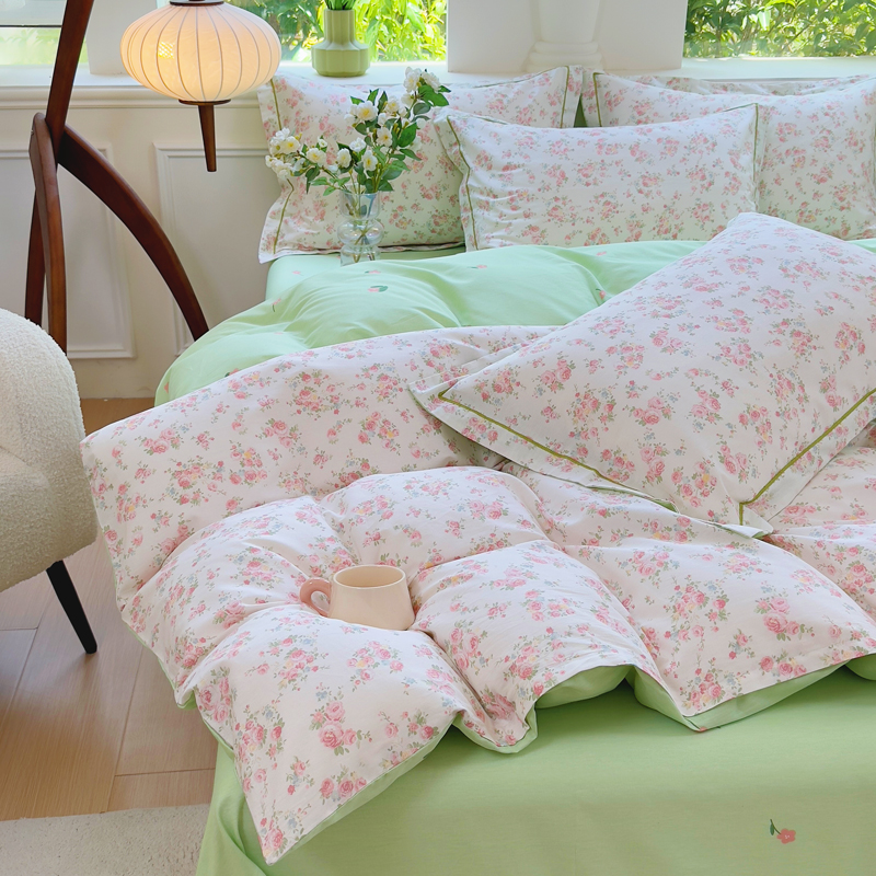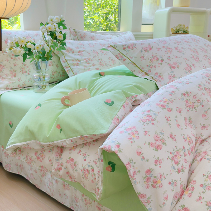 铭博家纺 新款直播爆款网红全棉四件套13070印花吊边一字绣纯棉被套工艺款 花语呢喃,花语呢喃