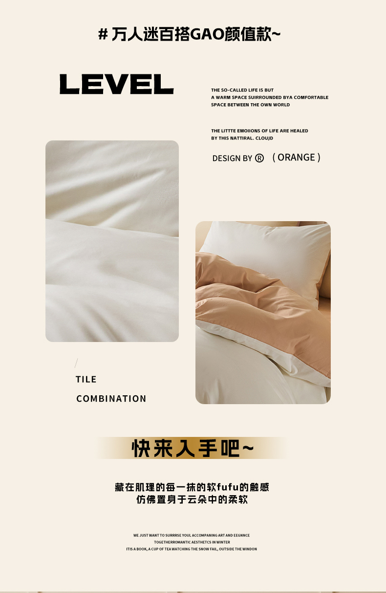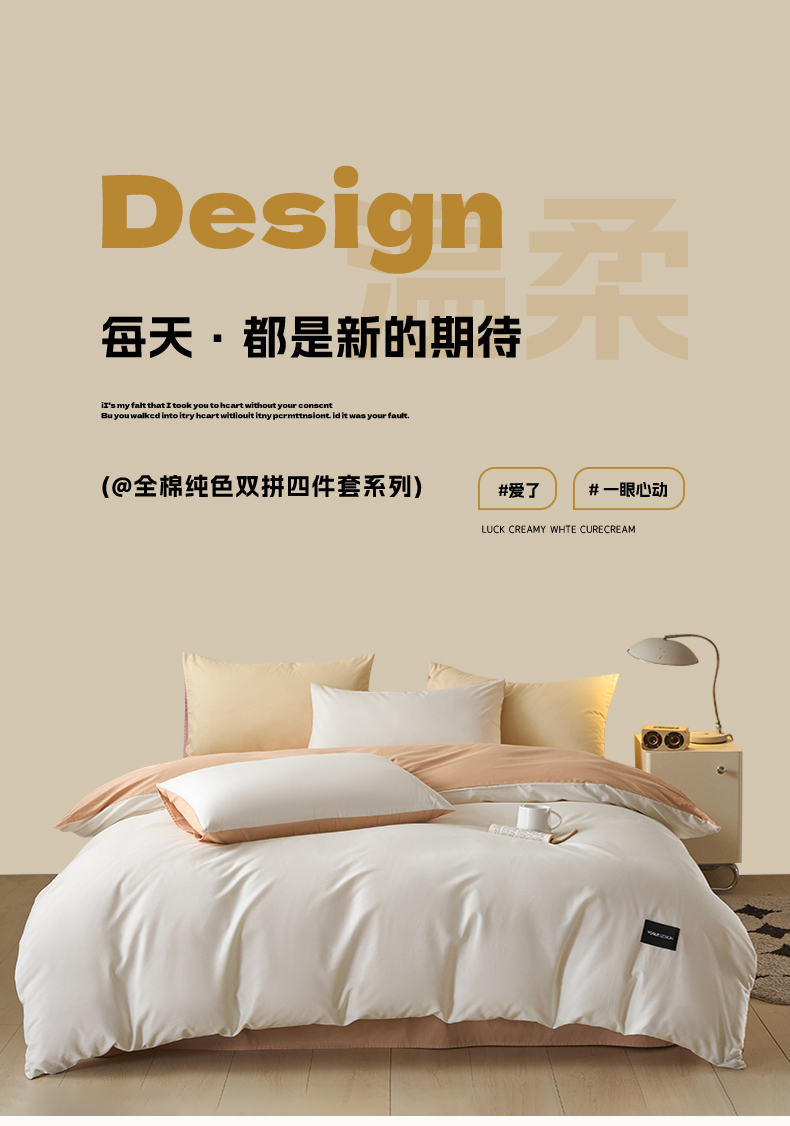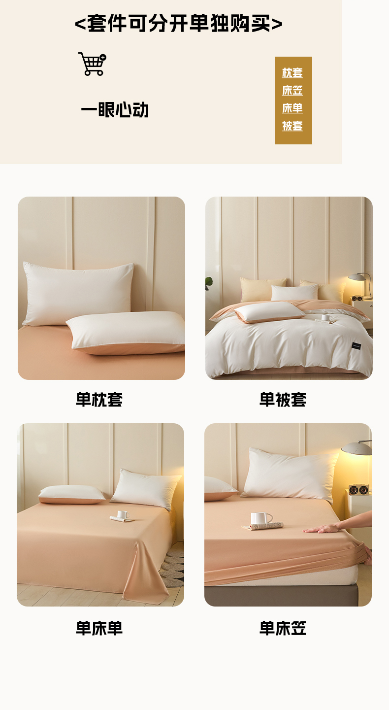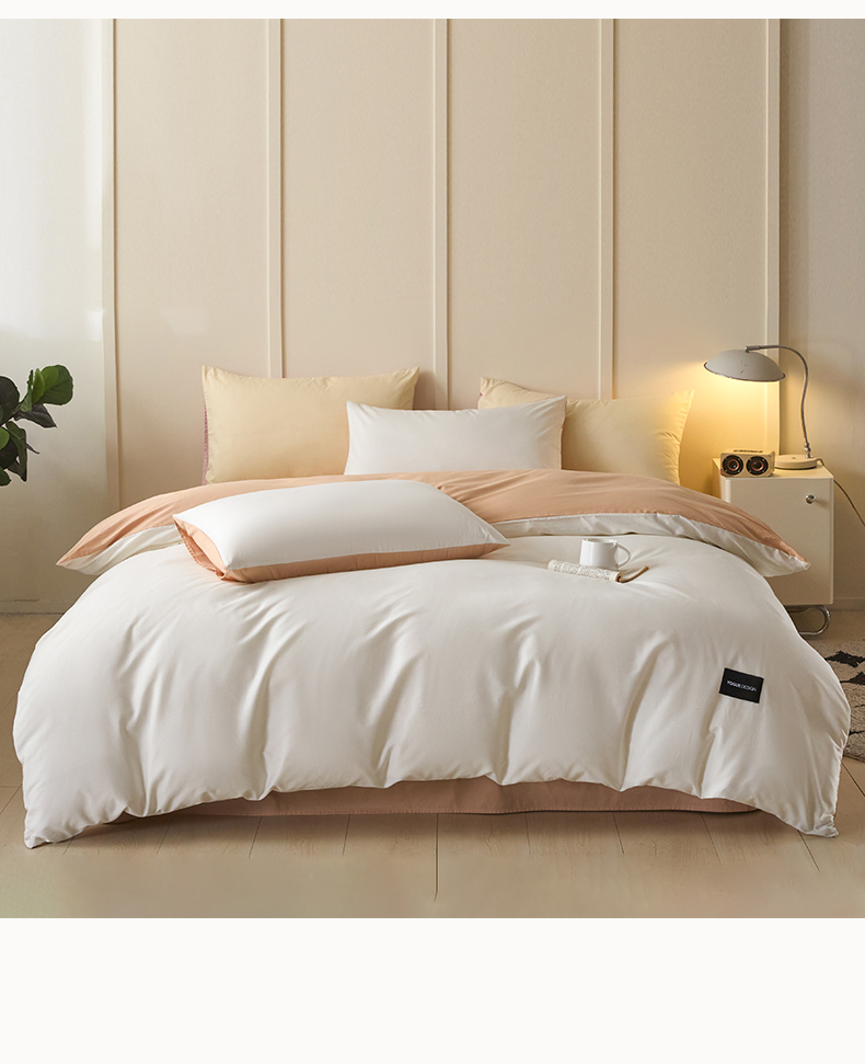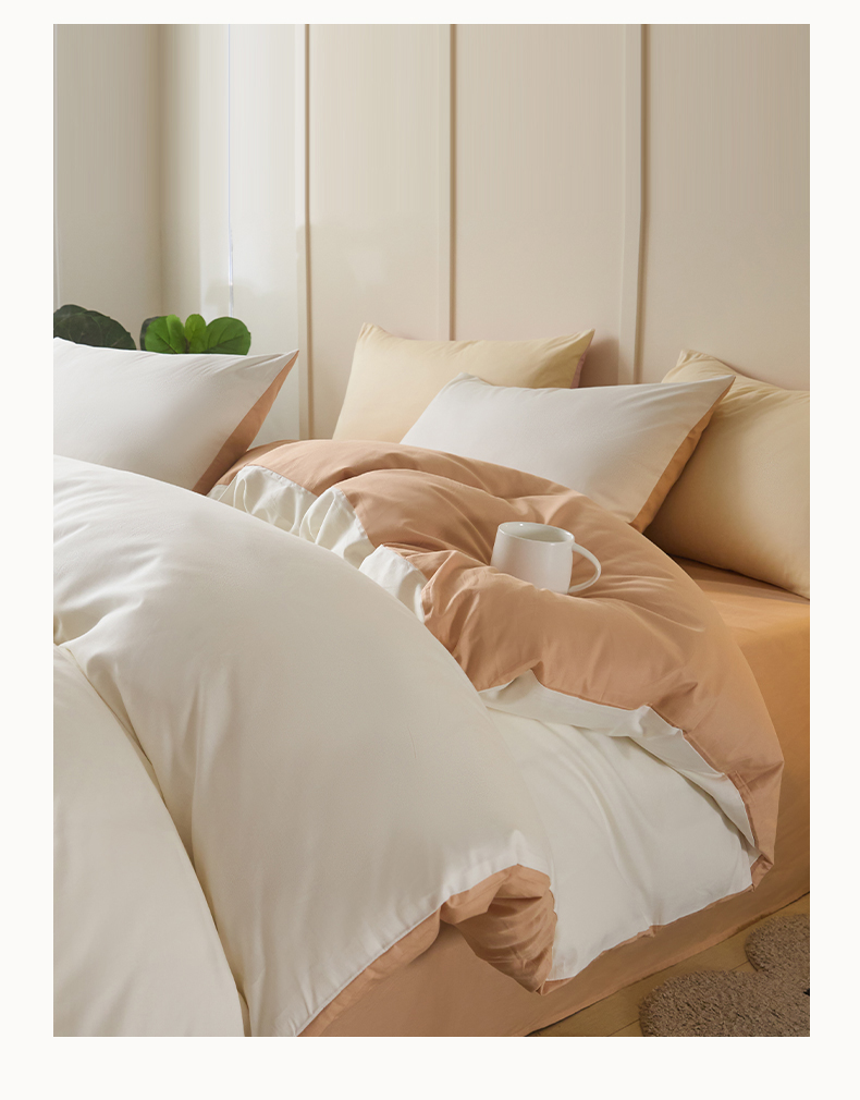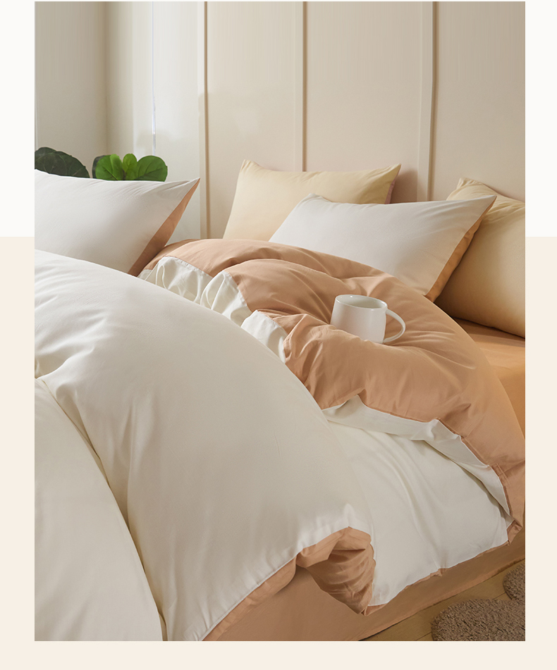 当前位置: 91家纺网 > 商品网购 > 床品套件 > 四件套 > 全棉普通四件套 > 乐美家纺 2025新款全棉纯棉纯色双拼多规格四件套 白+奶茶杏