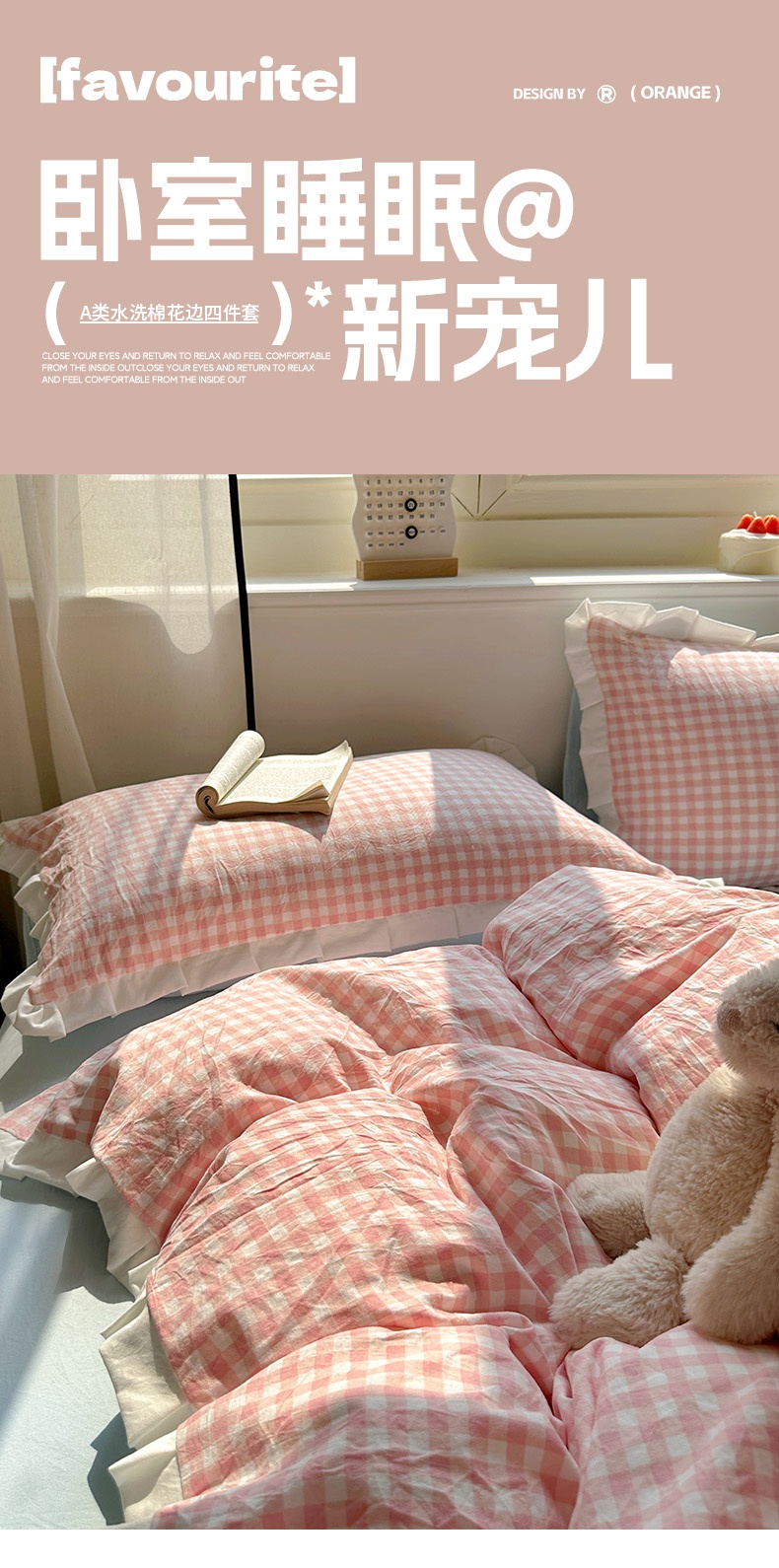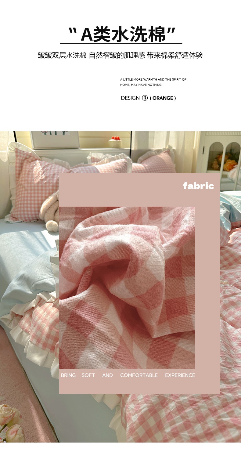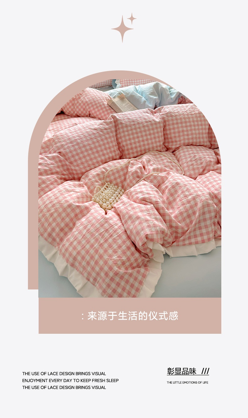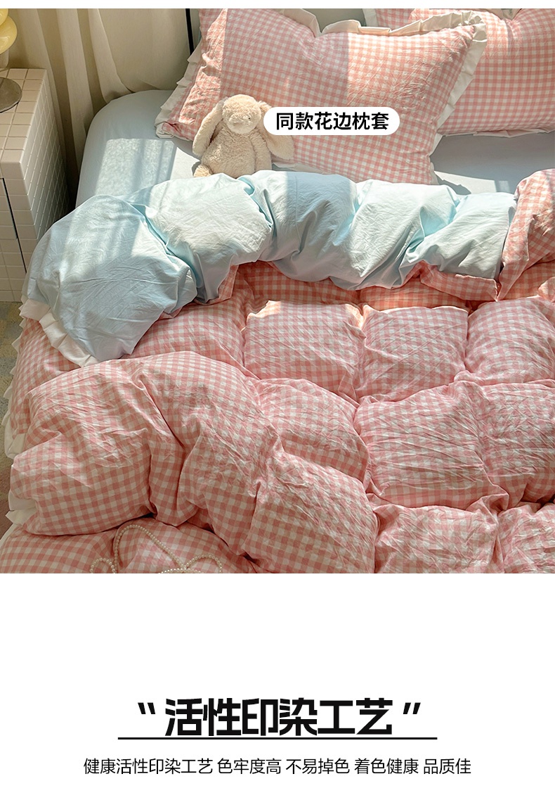 当前位置: 91家纺网 > 商品网购 > 床品套件 > 四件套 > 水洗棉四件套 > 冕悠家纺 2025新款少女心加厚超柔皱皱小花边水洗棉四件套(加微信提供买家秀 ) 公主-粉格
