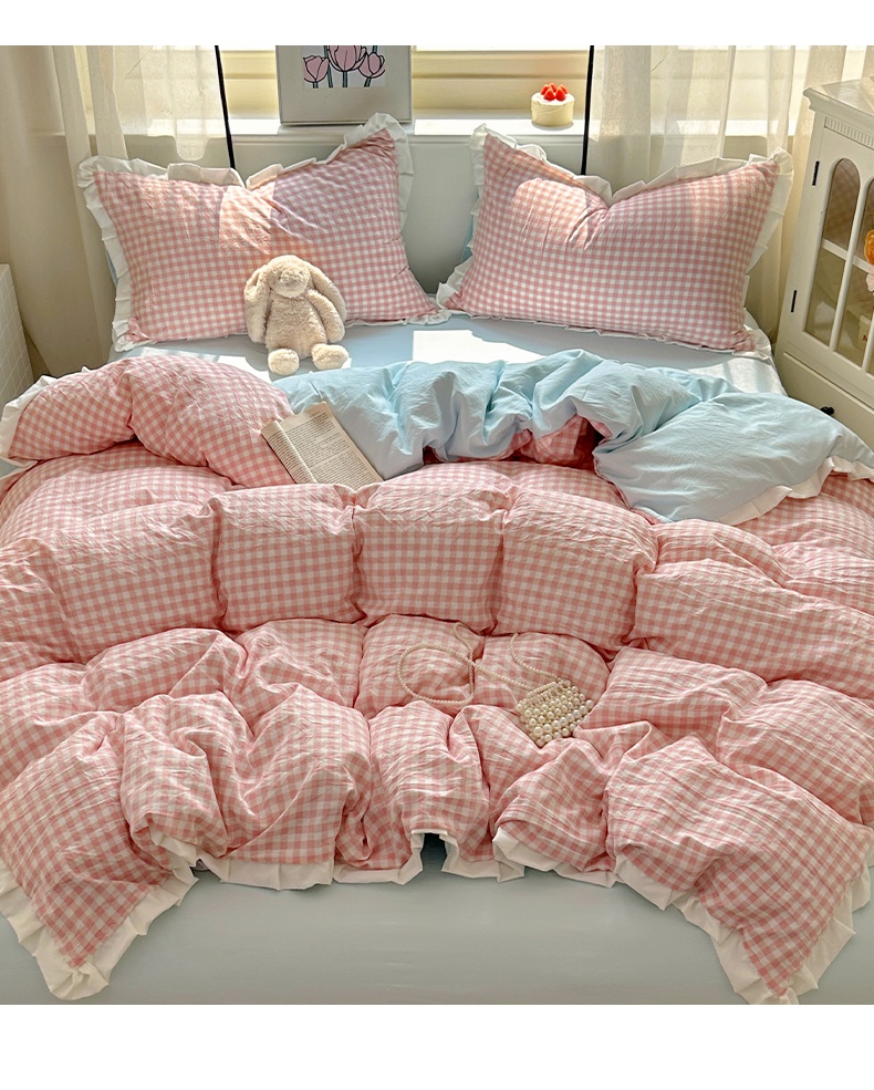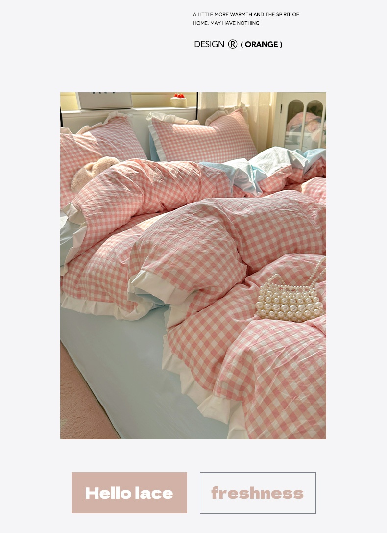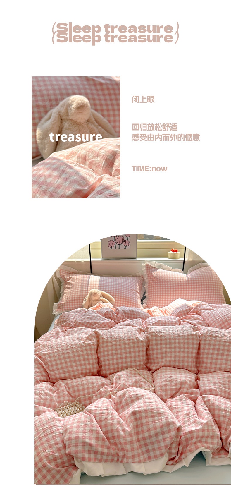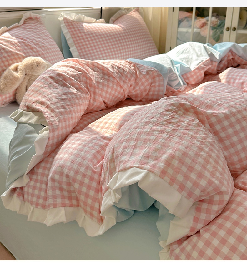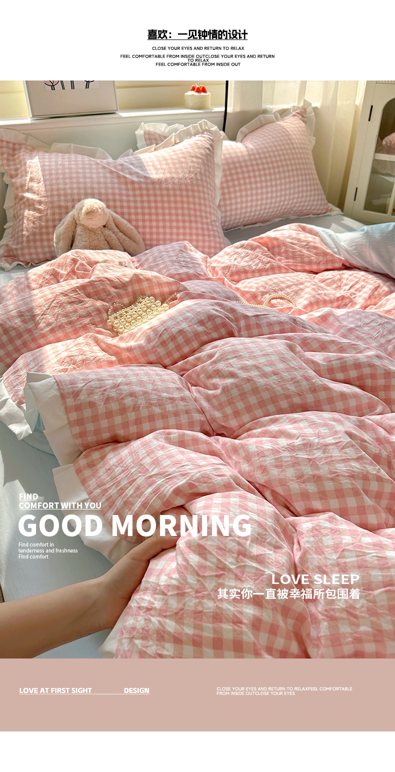 当前位置: 91家纺网 > 商品网购 > 床品套件 > 四件套 > 水洗棉四件套 > 冕悠家纺 2025新款少女心加厚超柔皱皱小花边水洗棉四件套(加微信提供买家秀 ) 公主-粉格