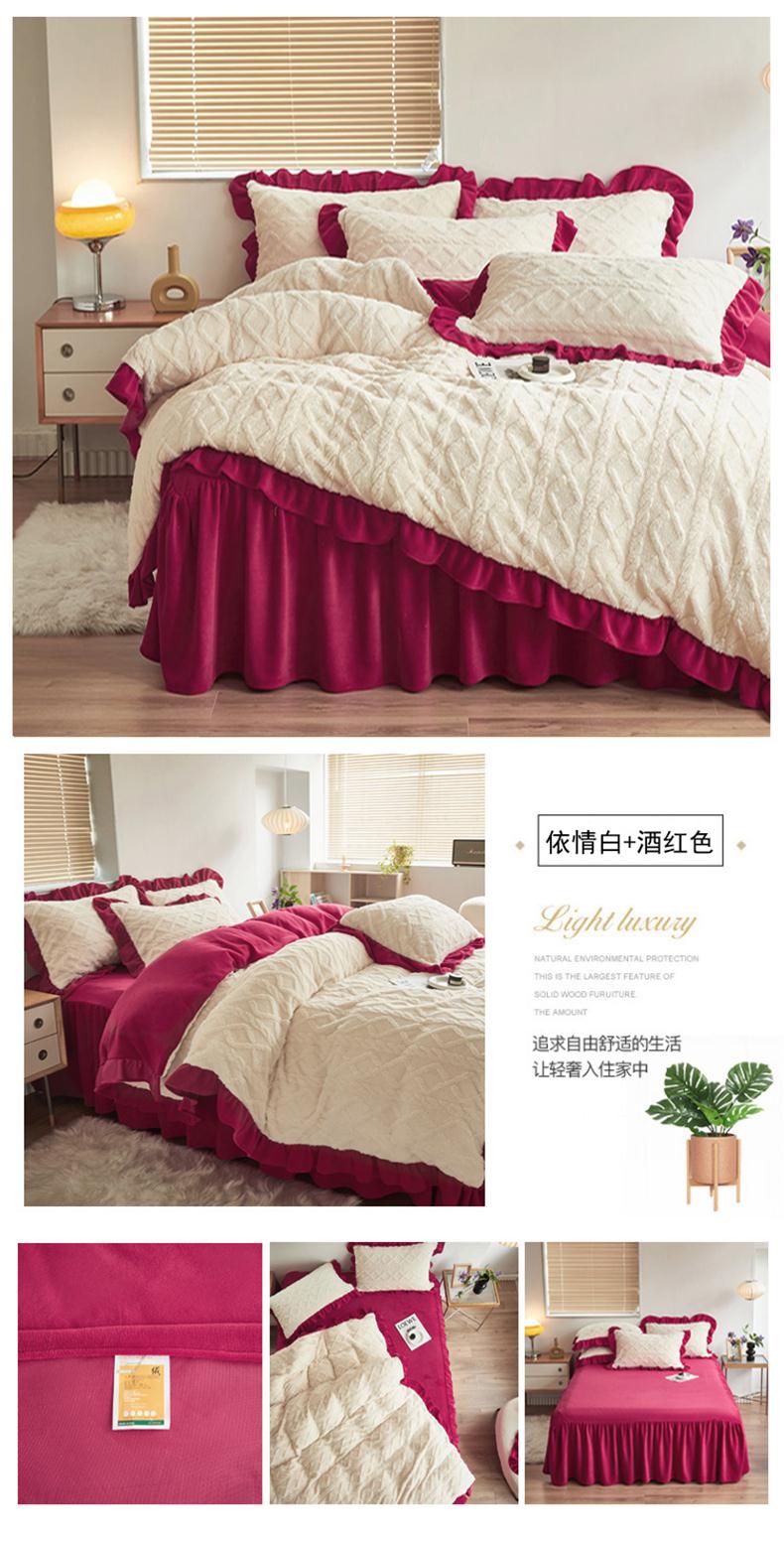 当前位置: 91家纺网 > 商品网购 > 床品套件 > 四件套 > 牛奶绒四件套 > 睡美人 2025新款韩版塔芙绒牛奶绒床单床裙床笠款四件套 依情白+奶油粉