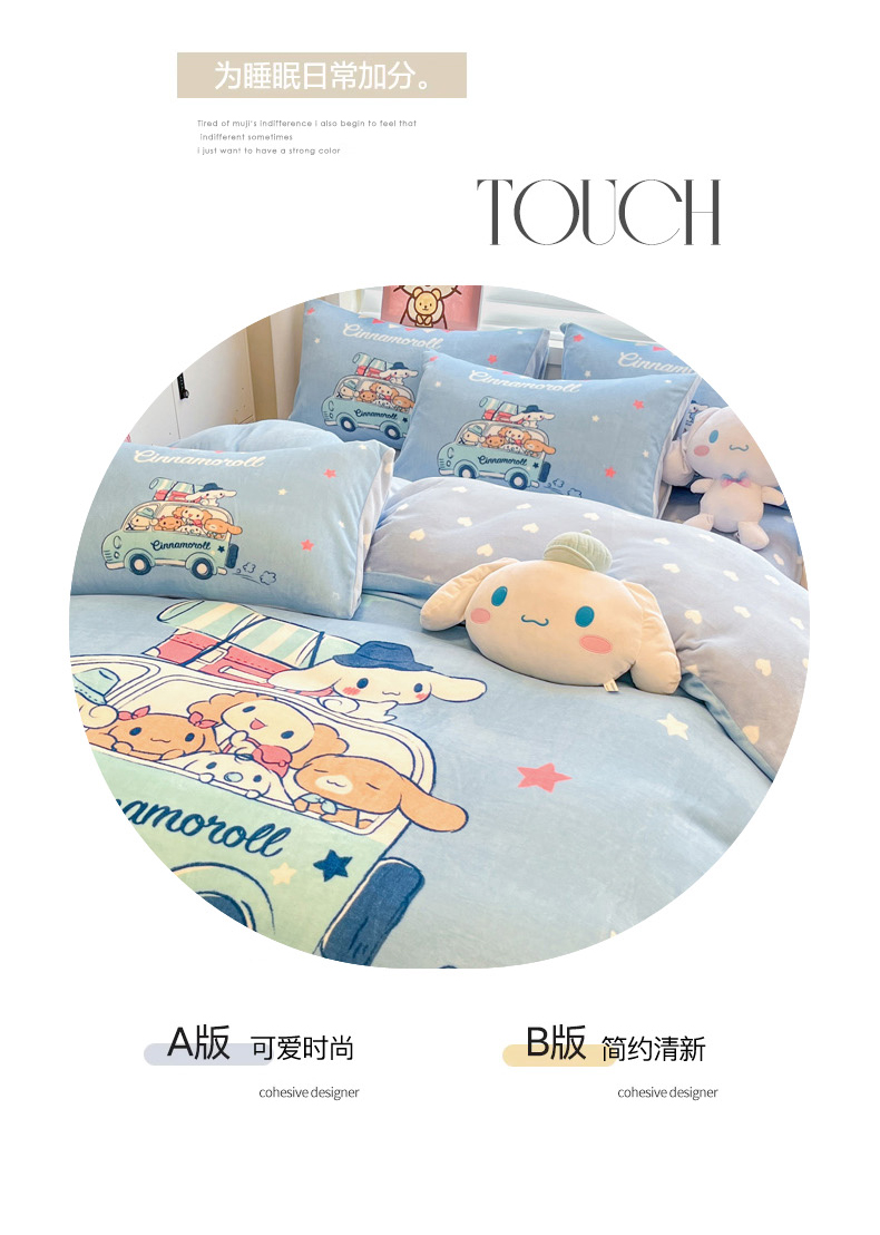 当前位置: 91家纺网 > 商品网购 > 床品套件 > 四件套 > 牛奶绒四件套 > 暮思家居 2025新款正版授权三丽鸥大阪数码印花高克重加厚保暖牛奶绒四件套 绒大阪-伙伴玉桂狗