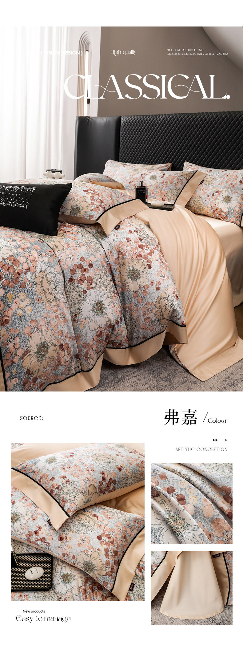 商品名称:2025新款直播热款A类数码印花全棉四件套纯棉复古美式长绒棉油画风高端床单被套床上用品 翎纳
