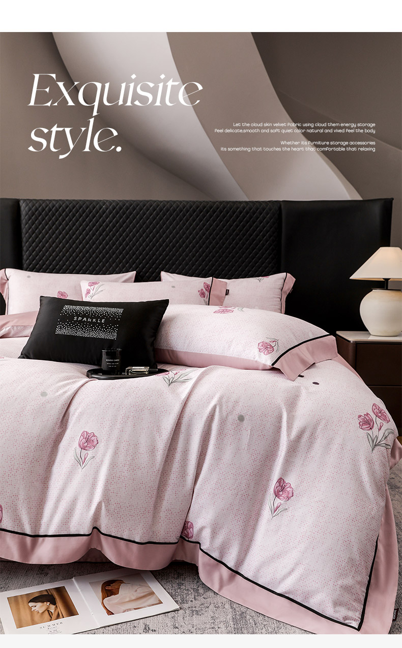 (总)2025新款轻奢风A类100支长绒棉四件套全棉纯棉重工刺绣床单床笠夹棉床笠床盖款高端床上用品-星慕,白粉,白蓝,茶绿,黛紫,慕蓝,奶玉,颜粉
