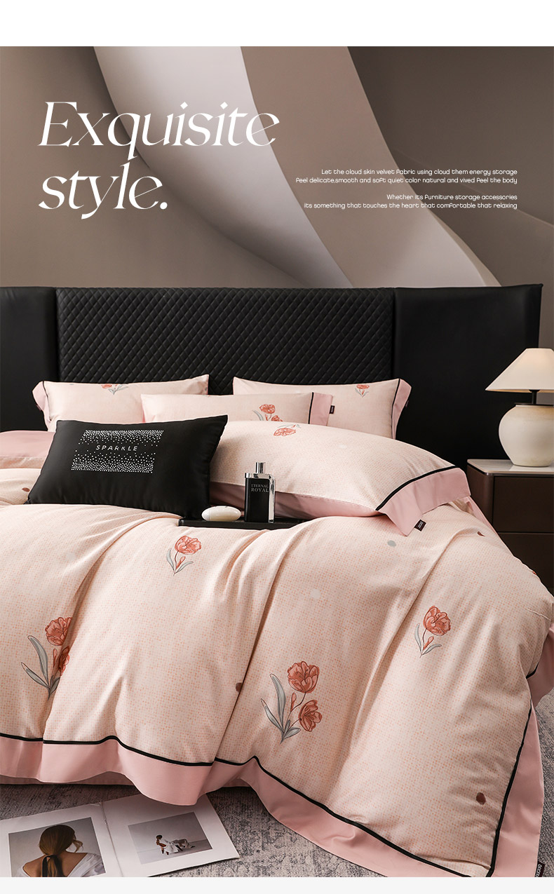 (总)乔利卡沃 2025秋冬季A类加厚全棉磨毛四件套纯棉保暖美式轻奢长绒棉数码印花高端床上用品,花弄影-黄,花弄影-蓝,花弄影-米,花弄影-紫