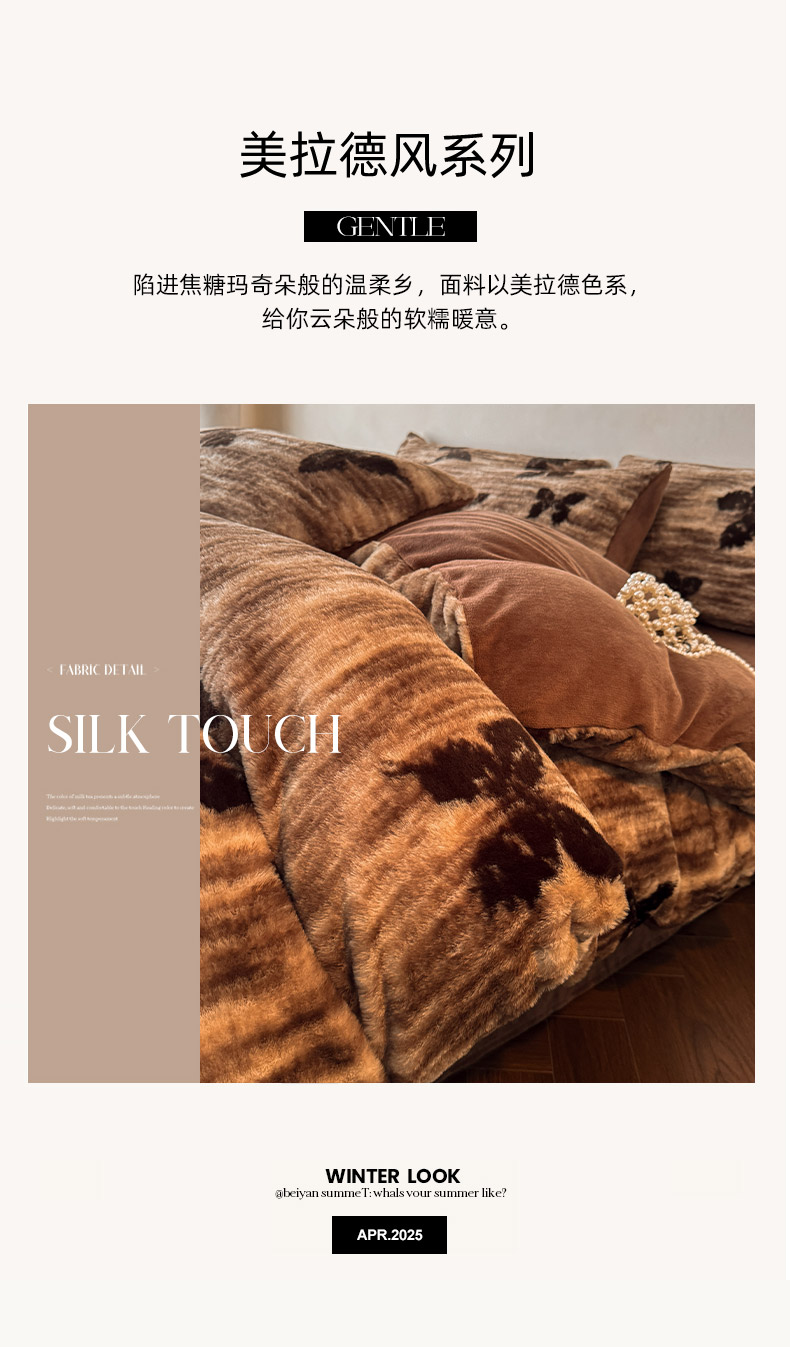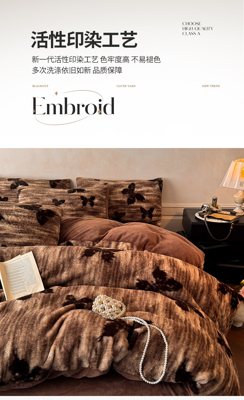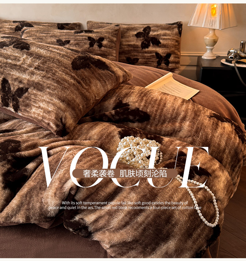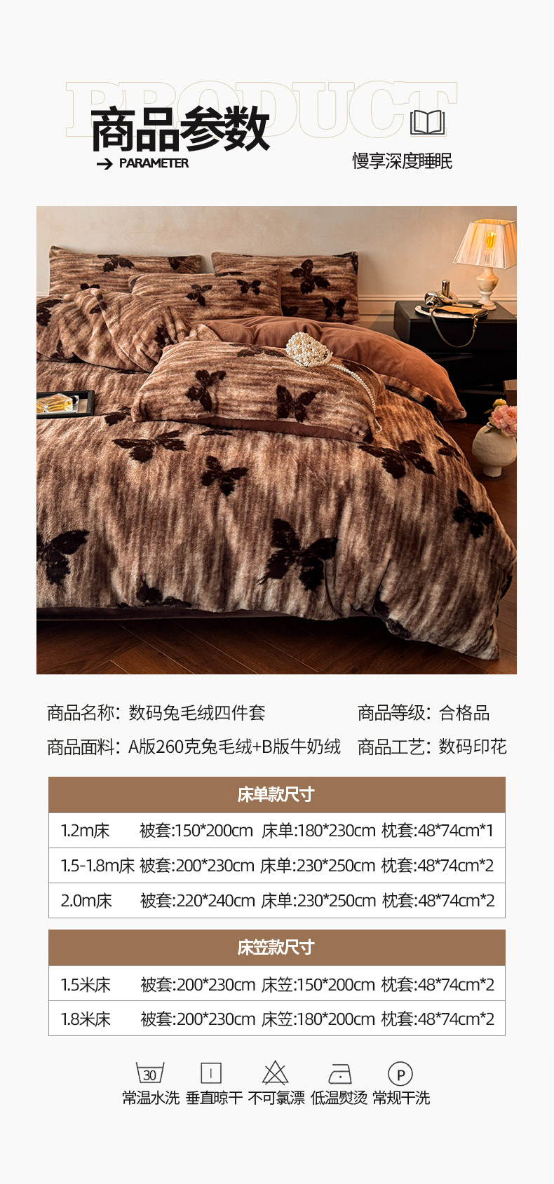 商品名称:吾秀家居 绒城 2025 美拉德260克数码兔毛四件套 牛奶绒四件套 - 可可系列 焦糖蝶舞