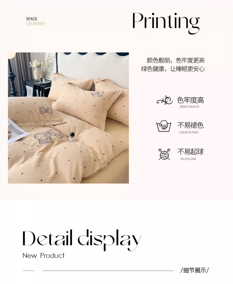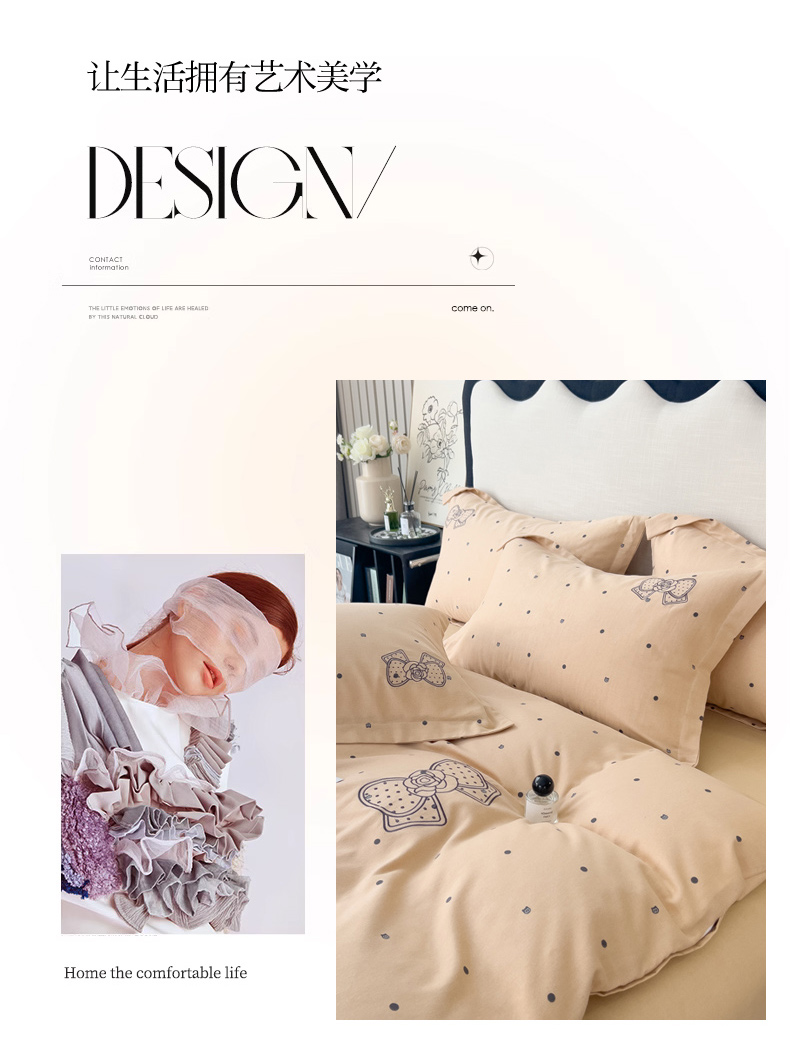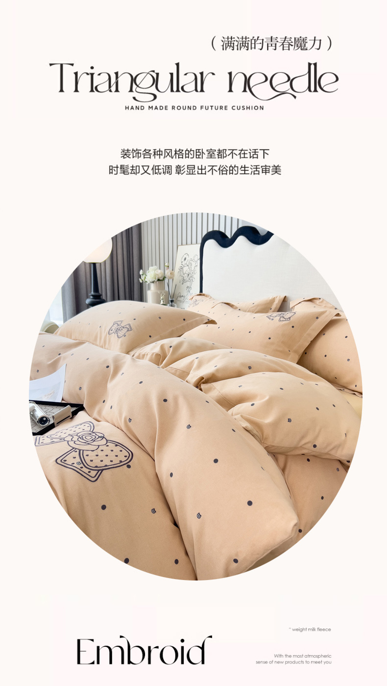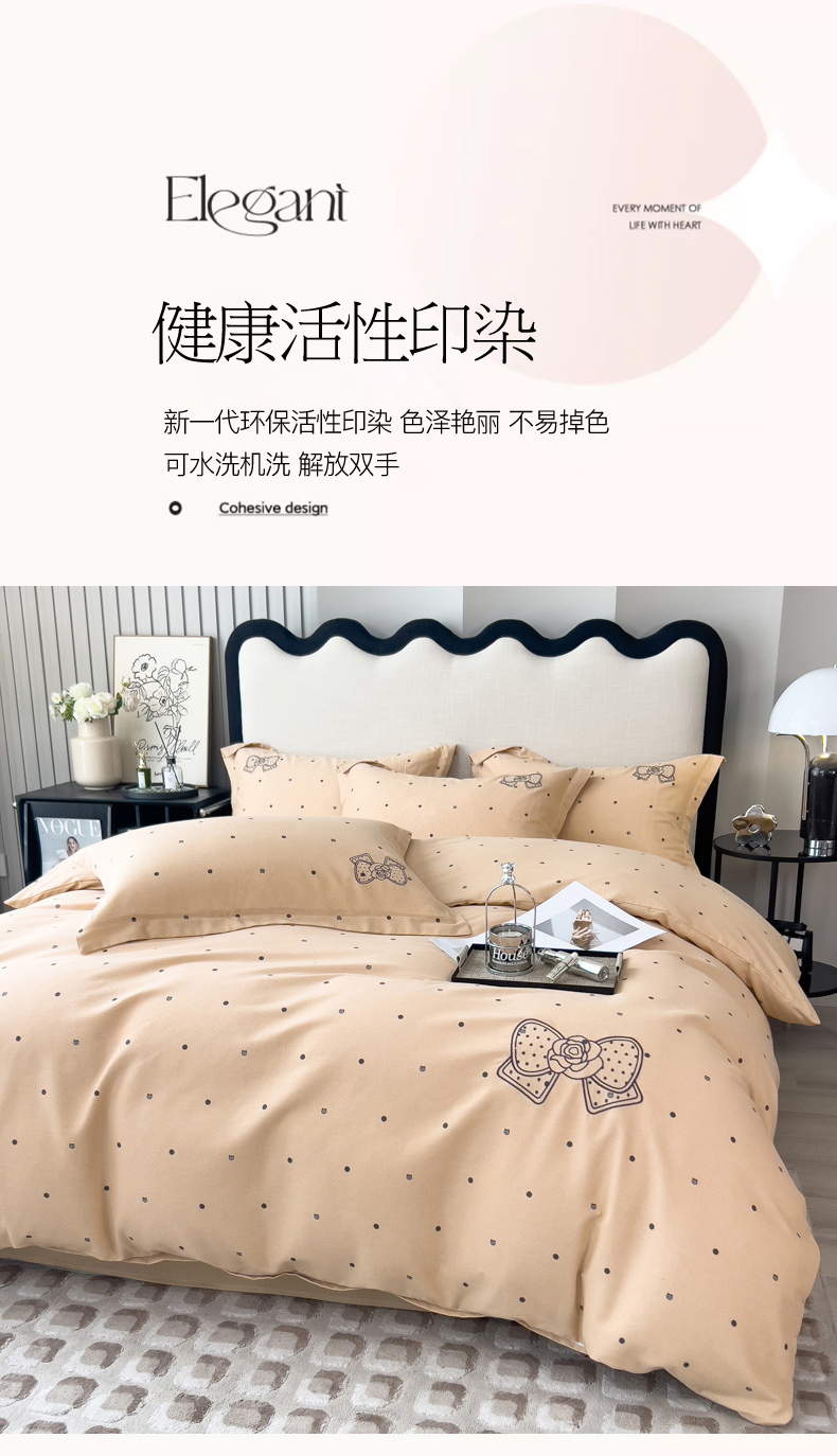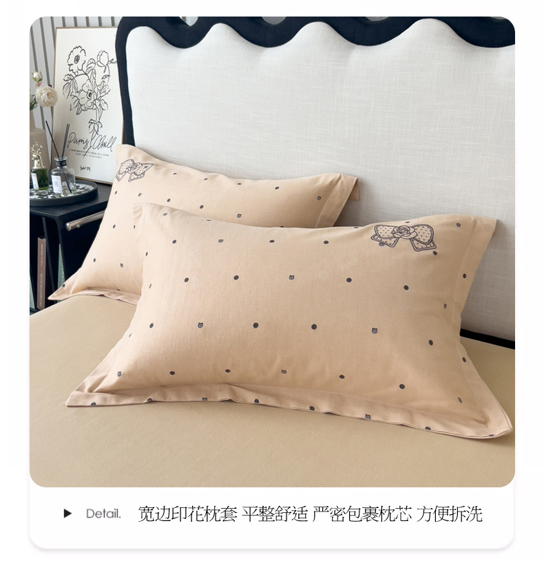 当前位置: 91家纺网 > 商品网购 > 床品套件 > 四件套 > 全棉普通四件套 > 印季家纺 2025新款全棉纯棉波点蝴蝶结绣花混纺磨毛四件套 奶咖