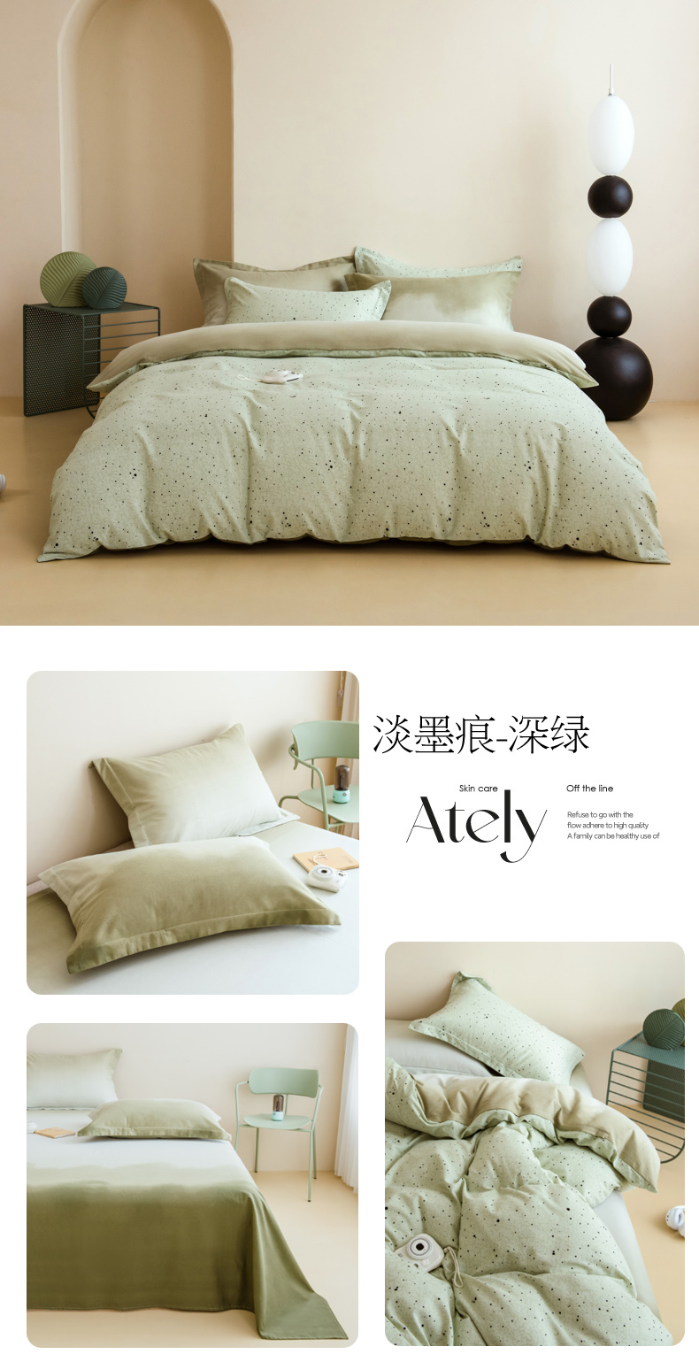 当前位置: 91家纺网 > 商品网购 > 床品套件 > 四件套 > 全棉普通四件套 > 印季家纺 2025新款全棉纯棉加厚混纺磨毛淡墨痕四件套 淡墨痕-绿