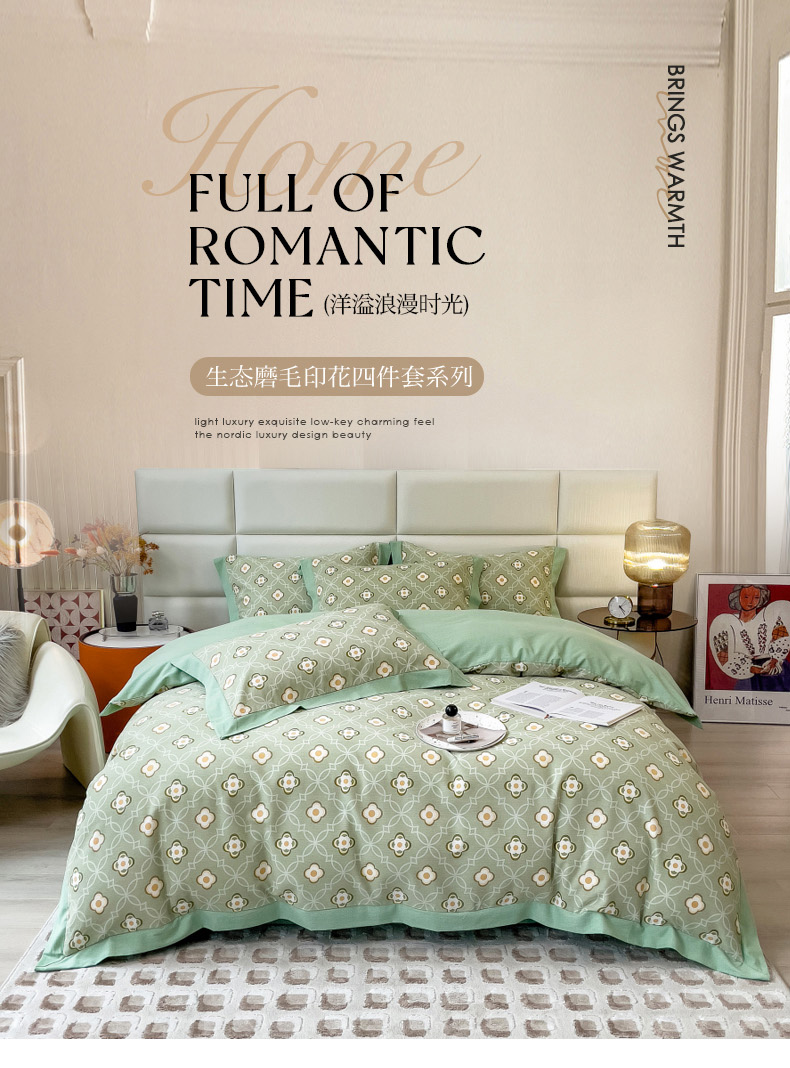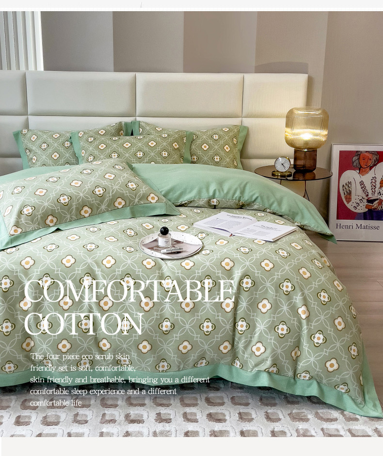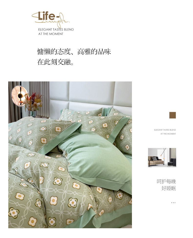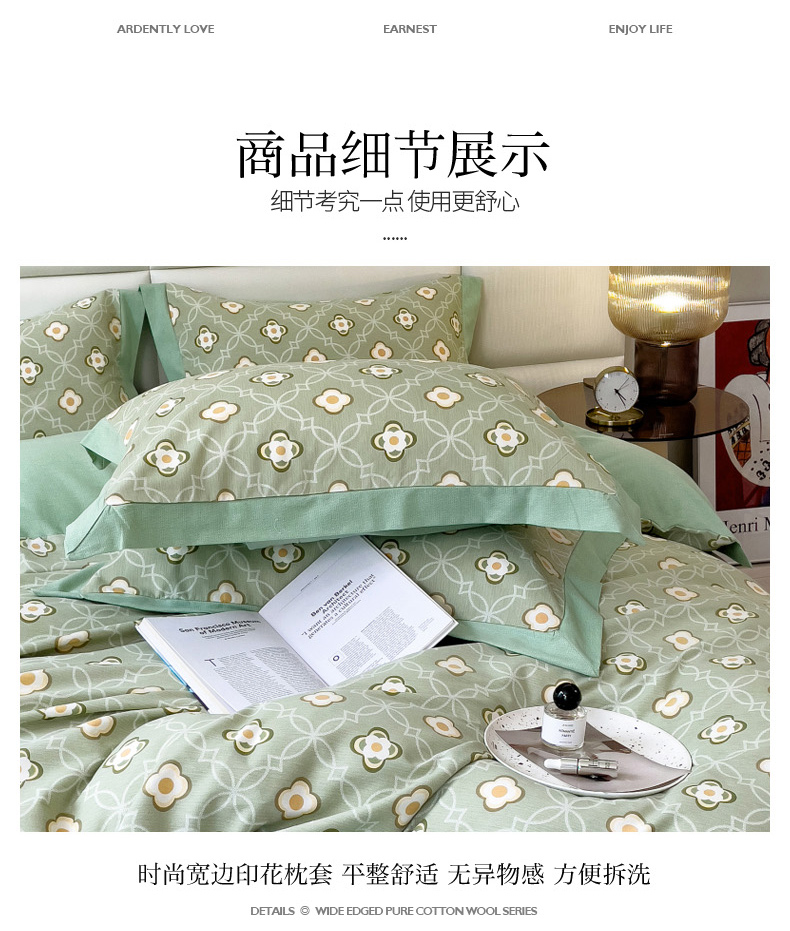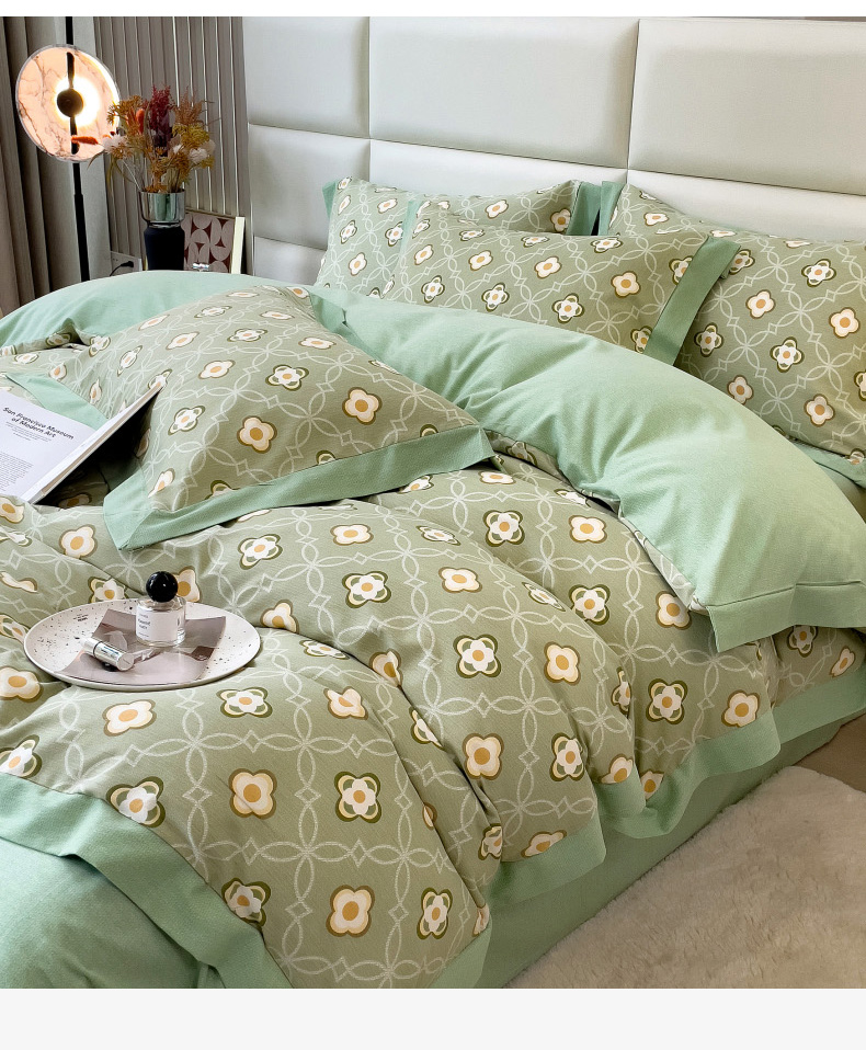 当前位置: 91家纺网 > 商品网购 > 床品套件 > 四件套 > 全棉普通四件套 > 印季家纺 2025新款生态全棉纯棉磨毛混纺欧式花边款四件套 卡萨(绿)