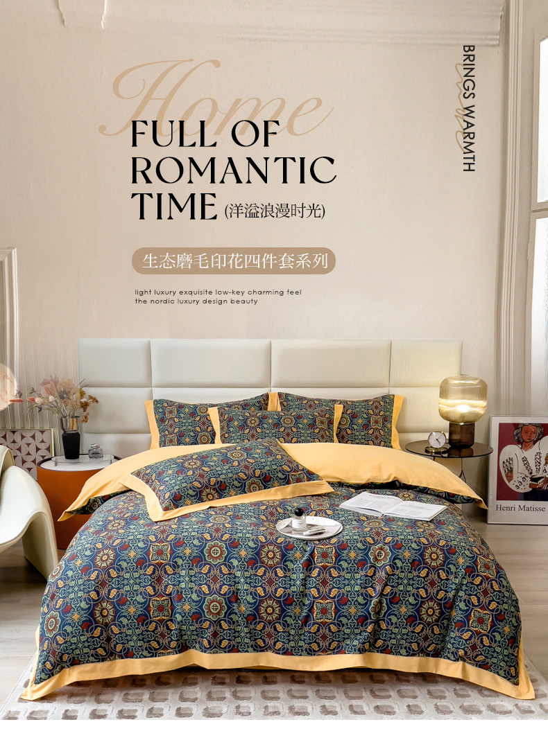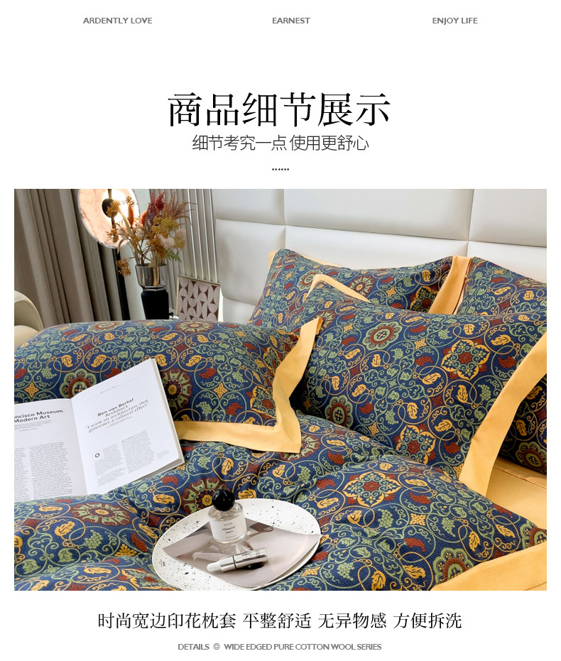 当前位置: 91家纺网 > 商品网购 > 床品套件 > 四件套 > 全棉普通四件套 > 印季家纺 2025新款生态全棉纯棉磨毛混纺欧式花边款四件套 永恒