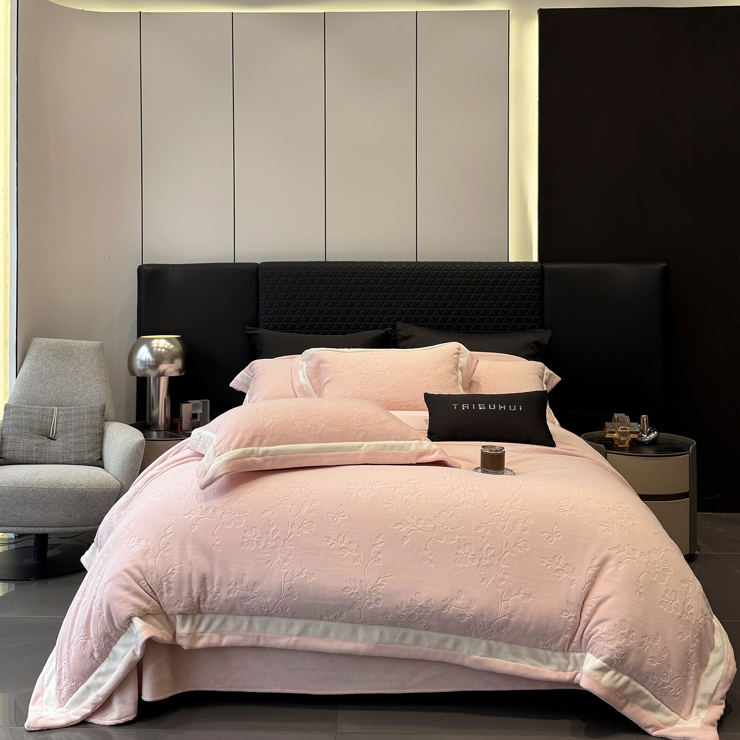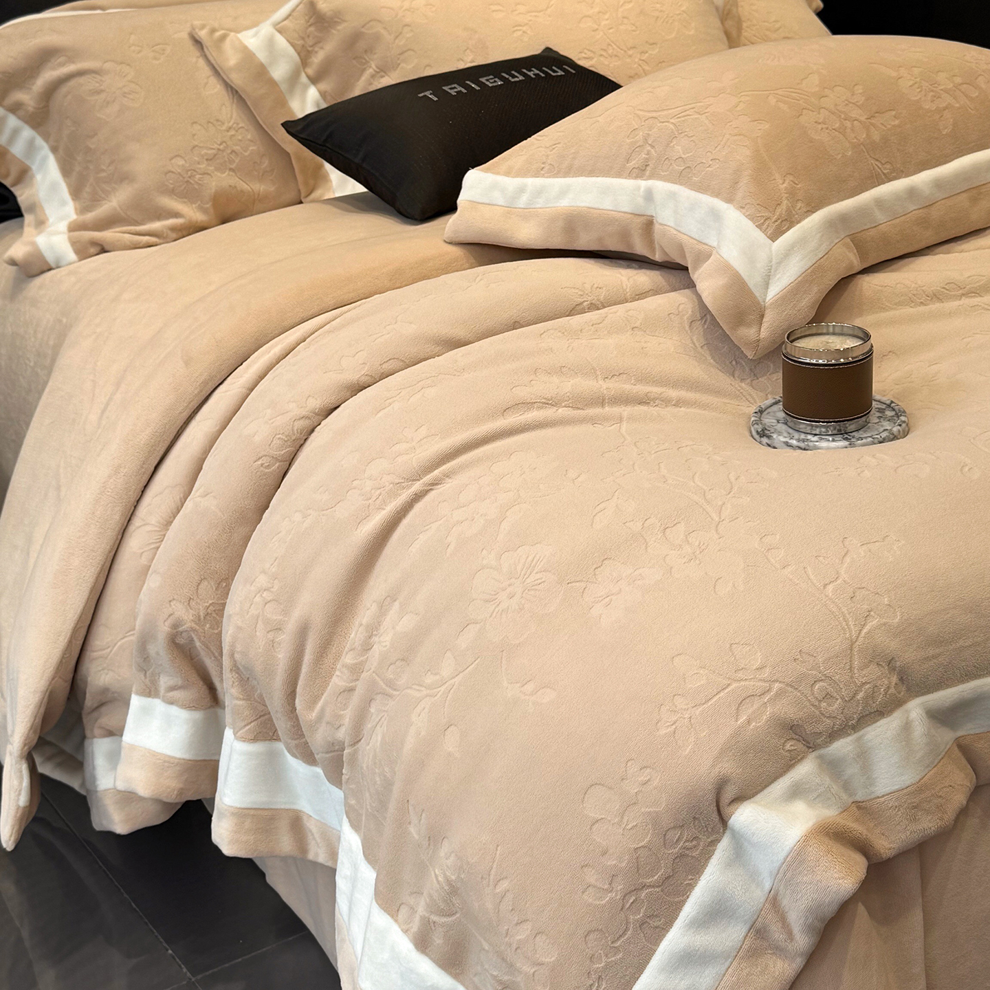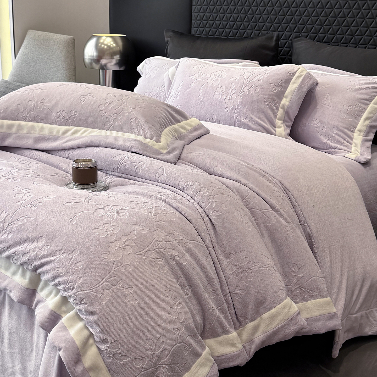 (总)太古汇家居 2025新款牛奶绒雕花+绣花四件套-薇薇安系列,薇薇安-粉色,薇薇安-卡其,薇薇安-蓝色,薇薇安-紫色