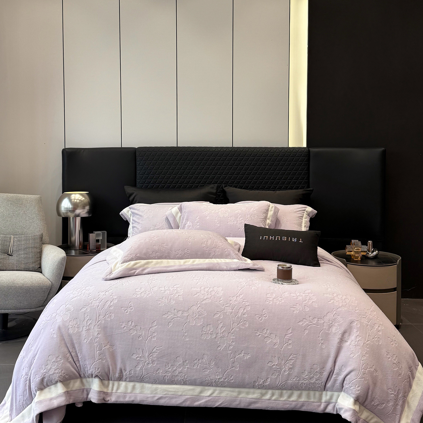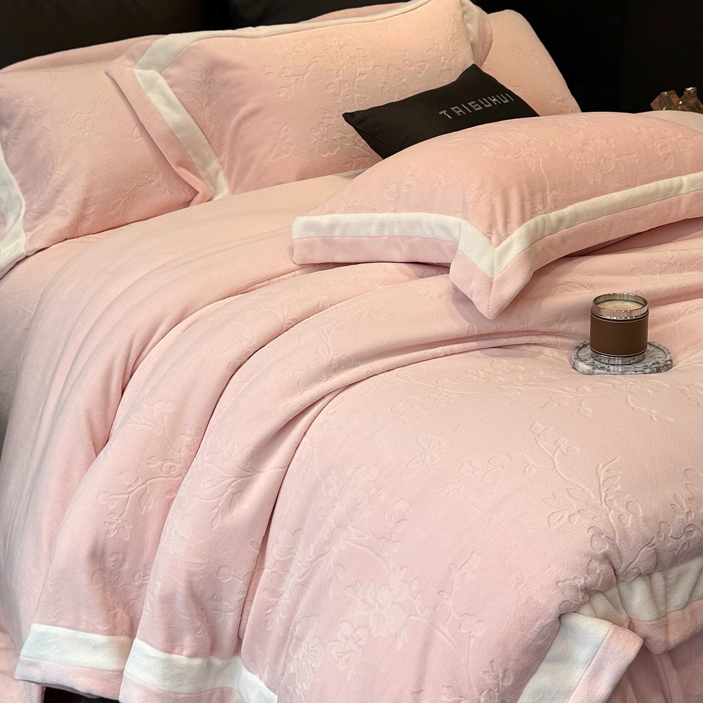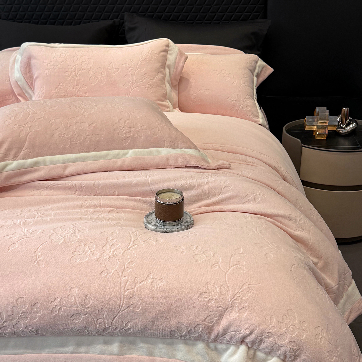 (总)太古汇家居 2025新款牛奶绒雕花+绣花四件套-薇薇安系列,薇薇安-粉色,薇薇安-卡其,薇薇安-蓝色,薇薇安-紫色