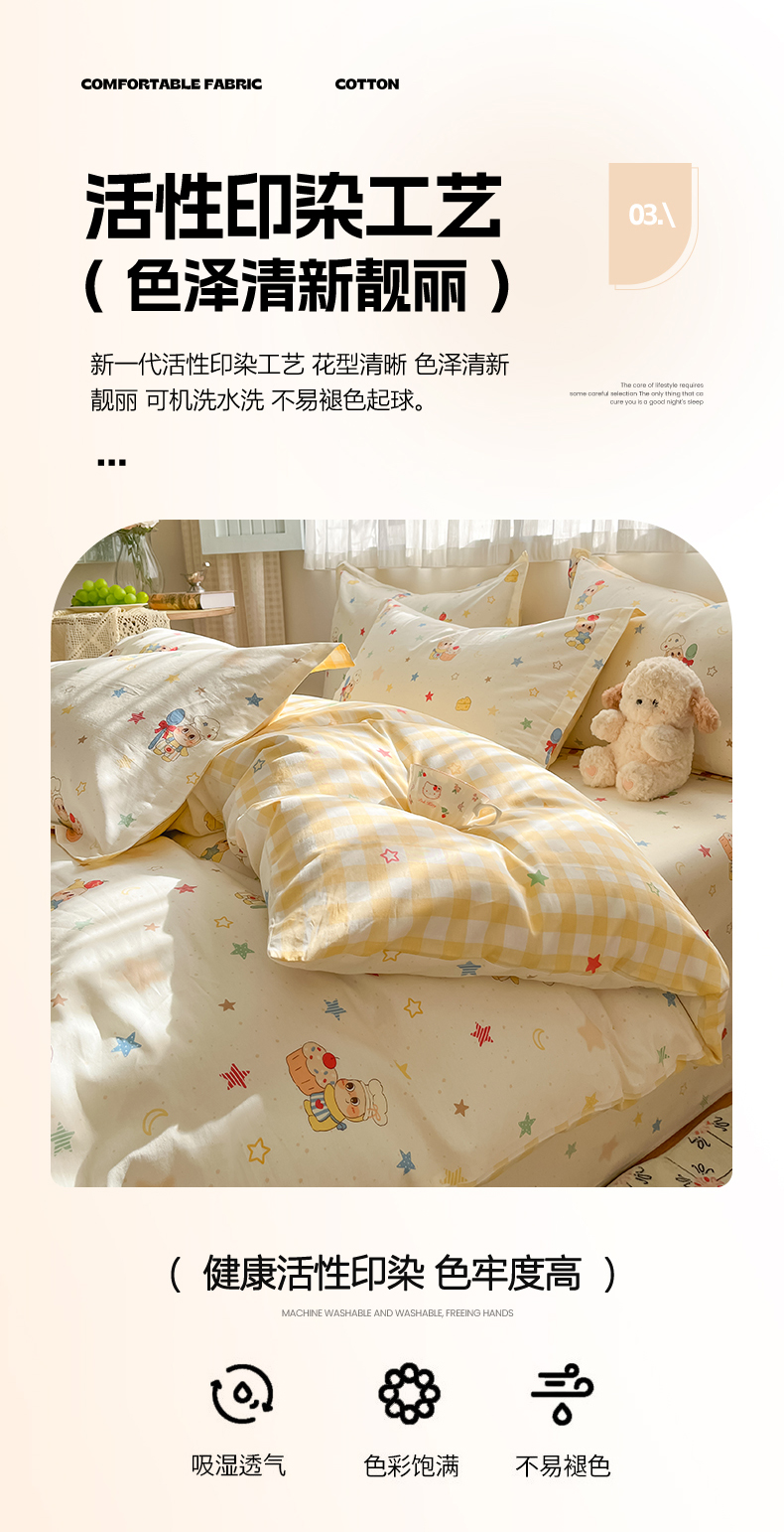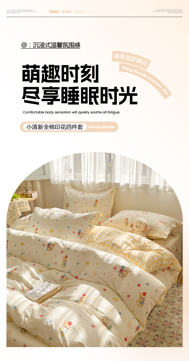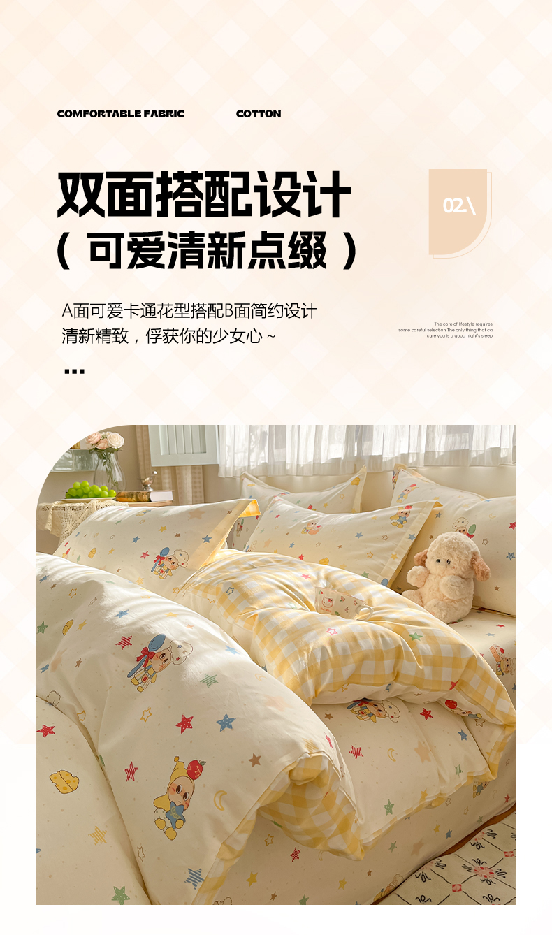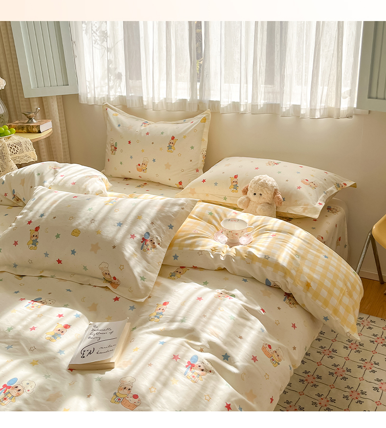 当前位置: 91家纺网 > 商品网购 > 床品套件 > 四件套 > 全棉普通四件套 > 花梦欣 2026新款全棉印花系列简约卡通款四件套 快乐小星