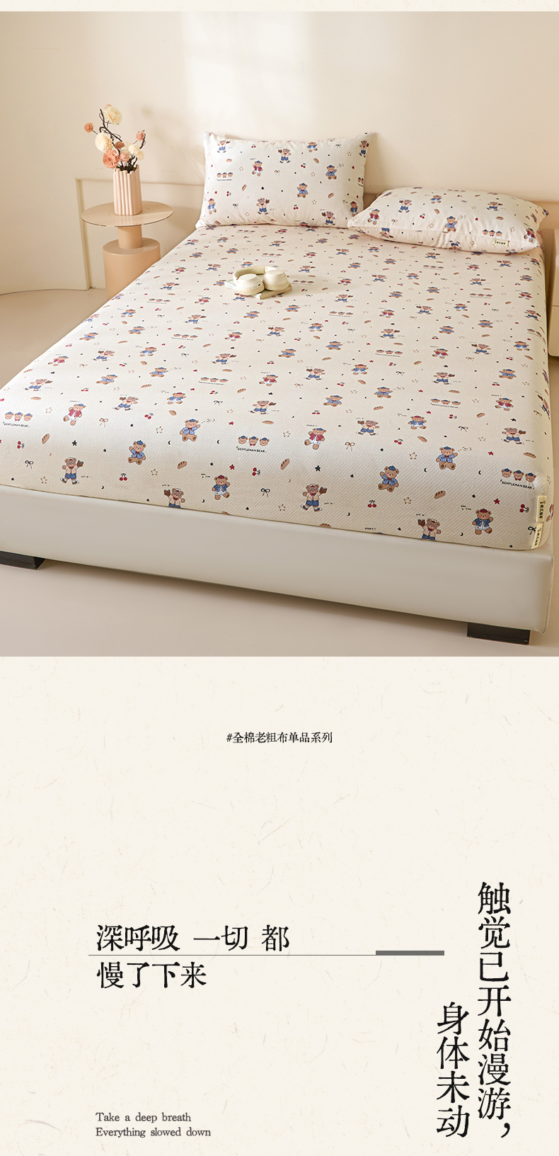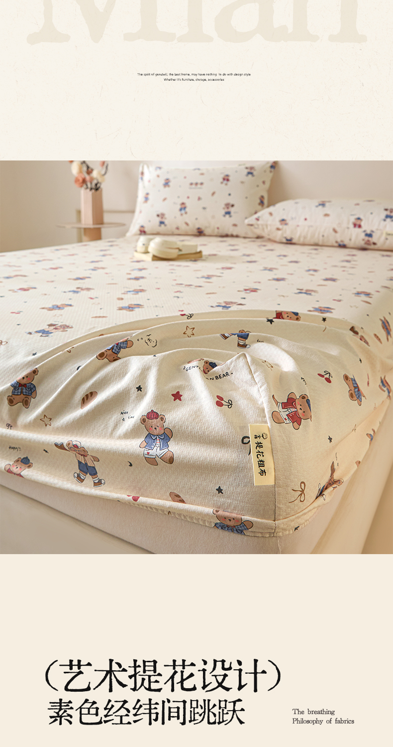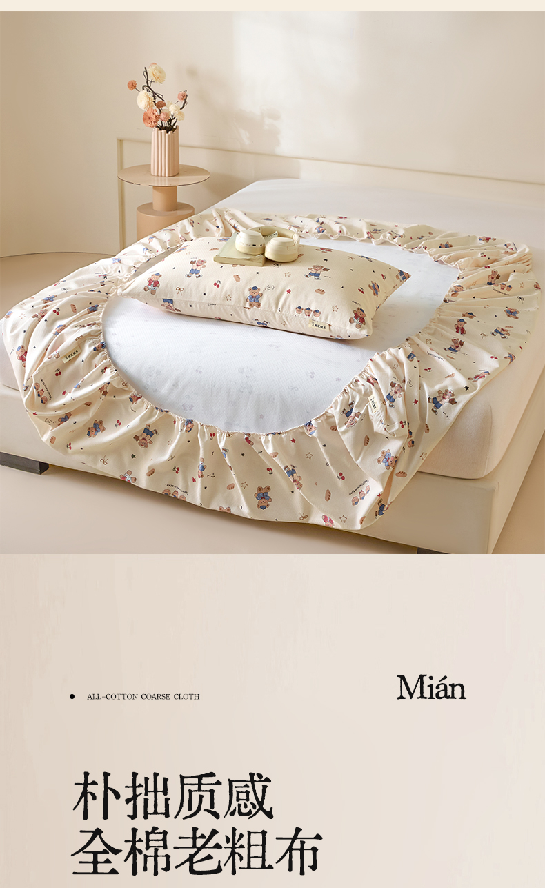 • 91家纺网 家纺一手货源 找家纺 涵宸家纺 2026新款全棉提花老粗布-单床笠 床笠-活力熊
