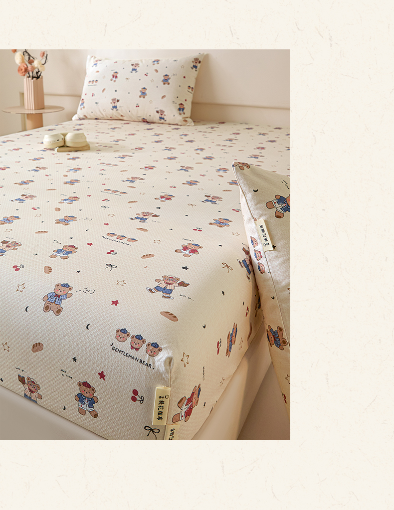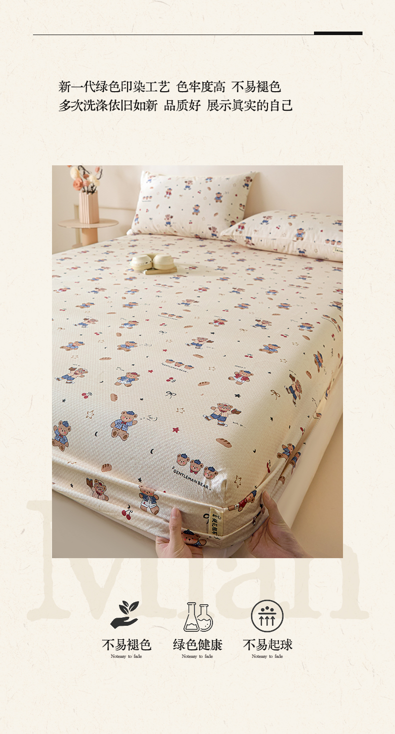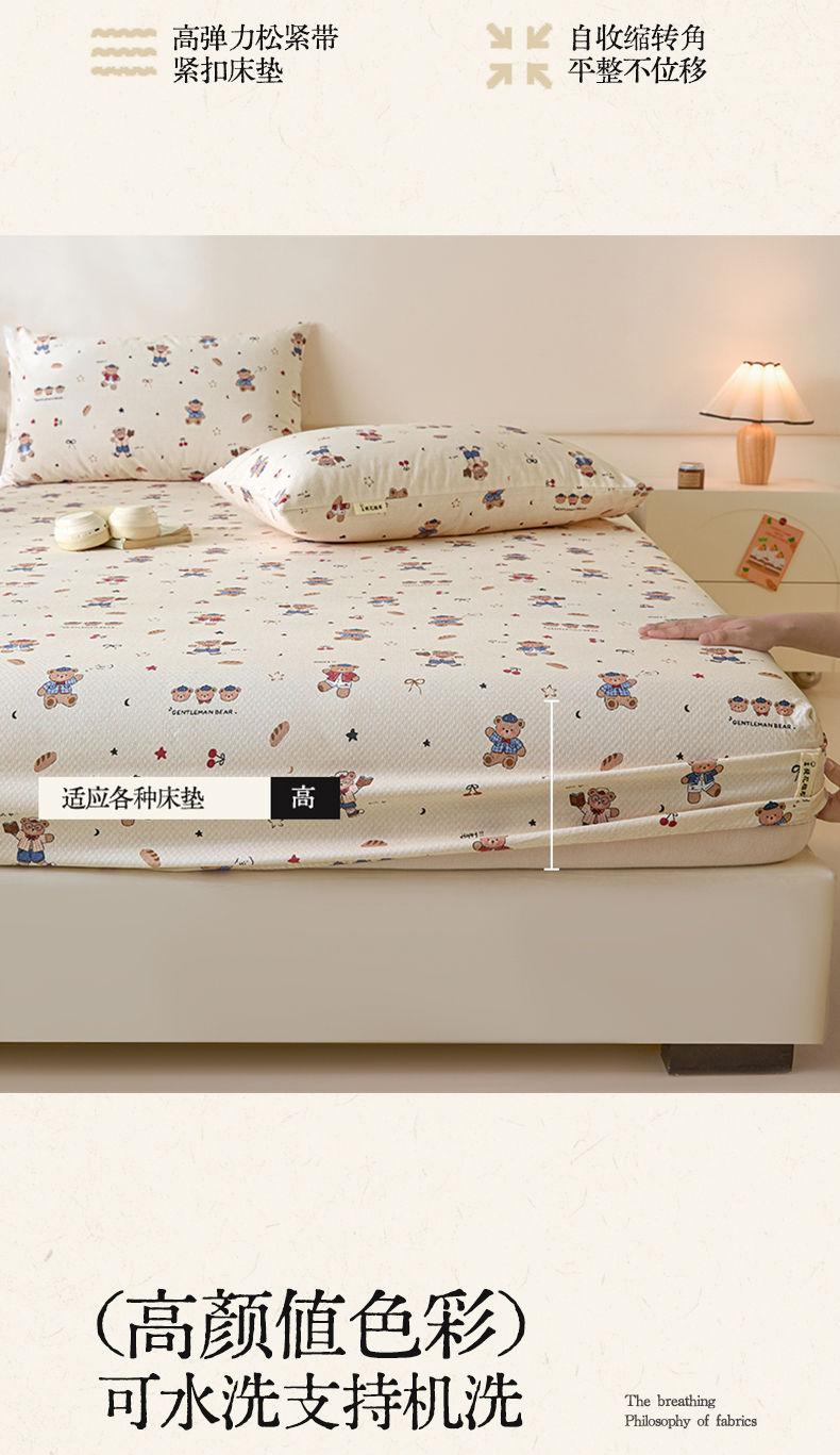 • 91家纺网 家纺一手货源 找家纺 涵宸家纺 2026新款全棉提花老粗布-单床笠 床笠-活力熊
