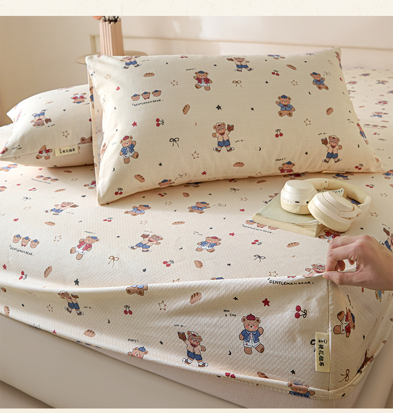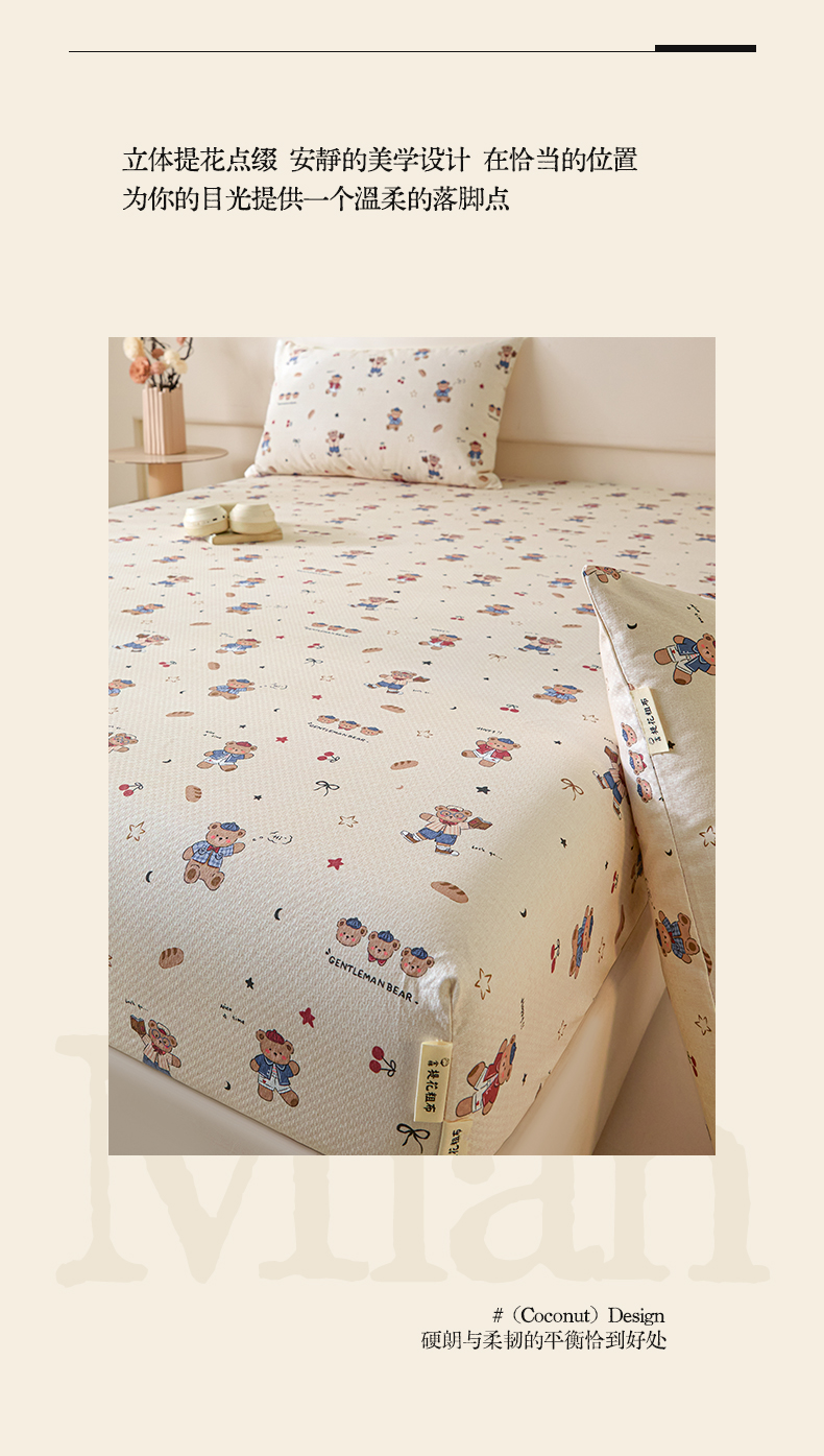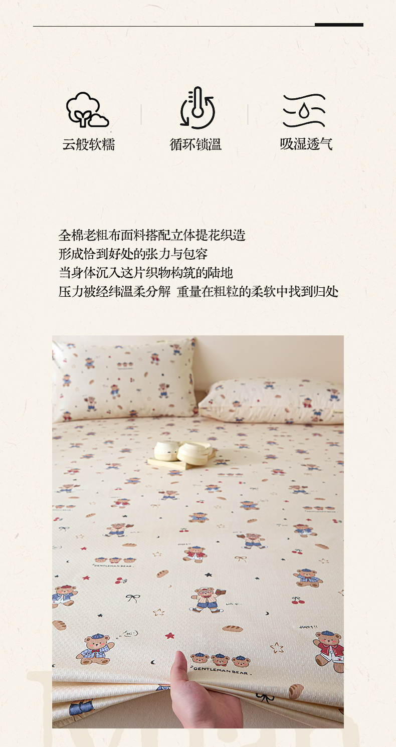 涵宸家纺 2026新款全棉提花老粗布-单床笠 床笠-活力熊