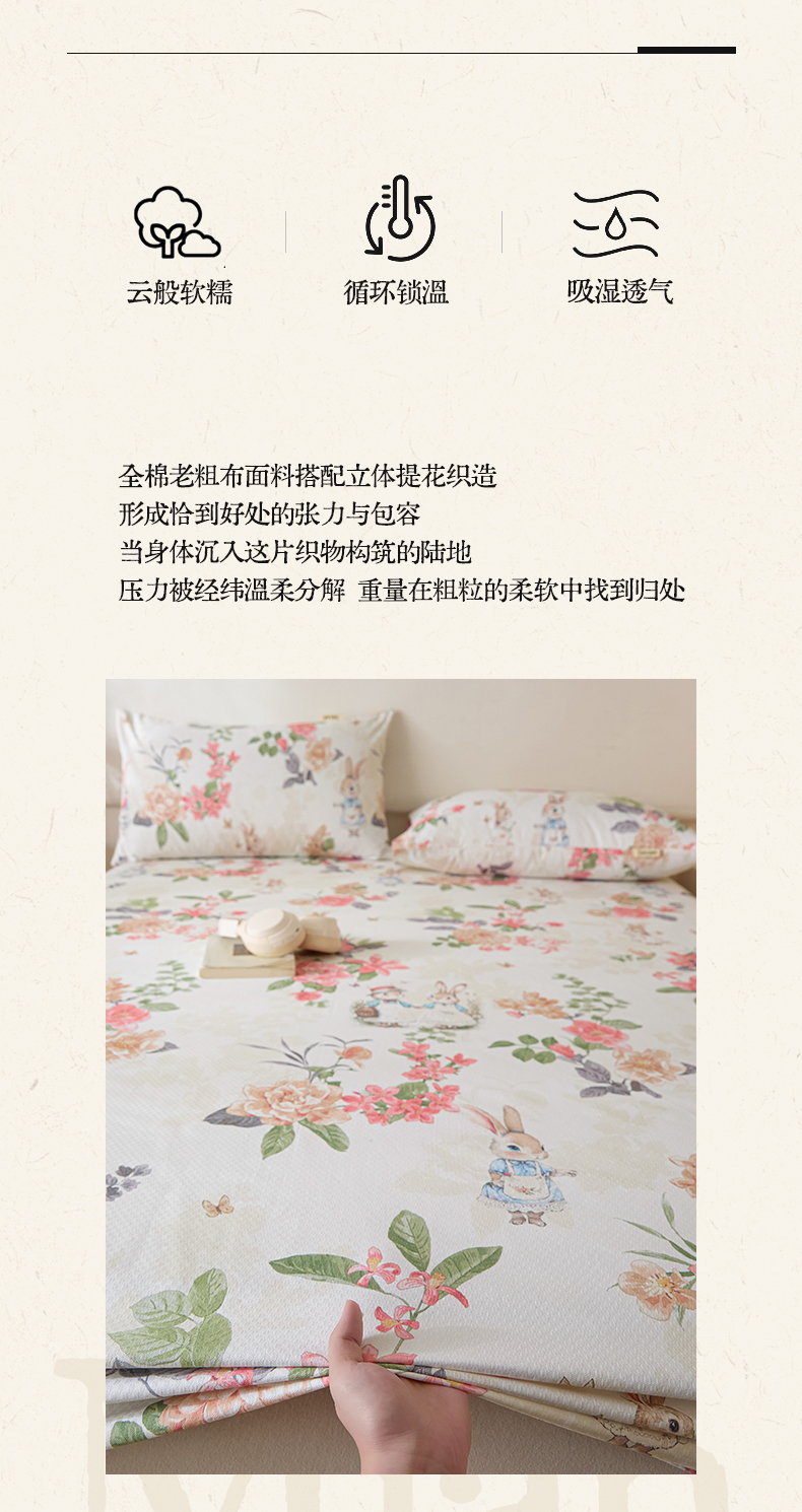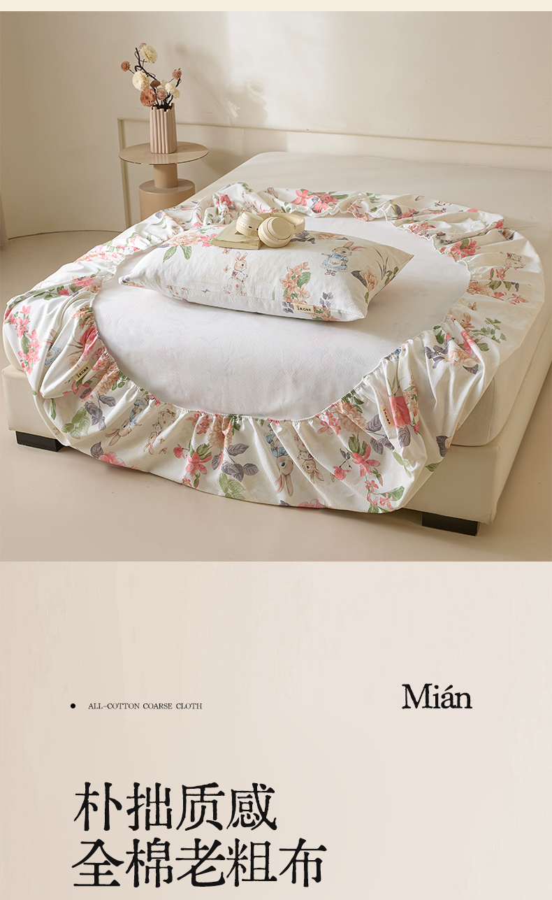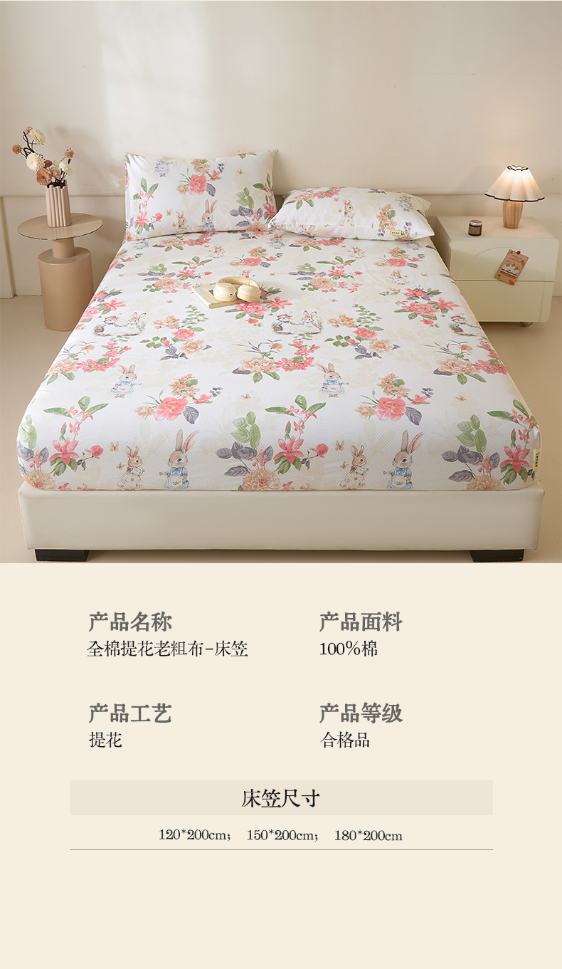 • 91家纺网 家纺一手货源 找家纺 涵宸家纺 2026新款全棉提花老粗布-单床笠 床笠-兔伴花