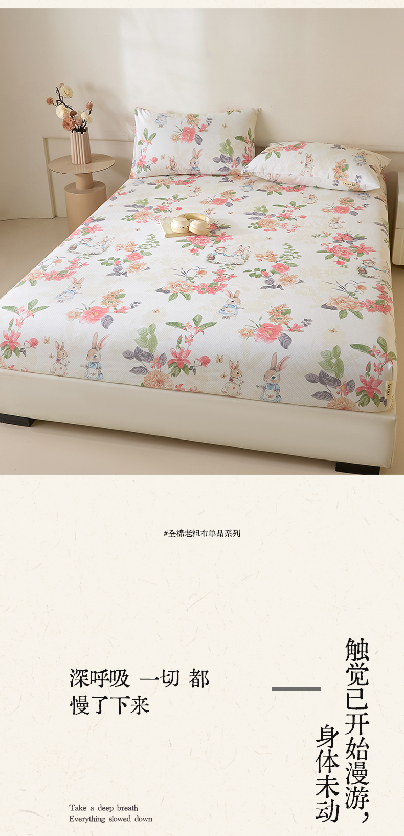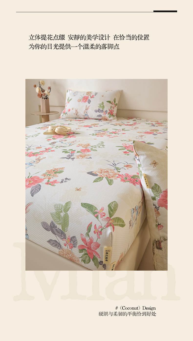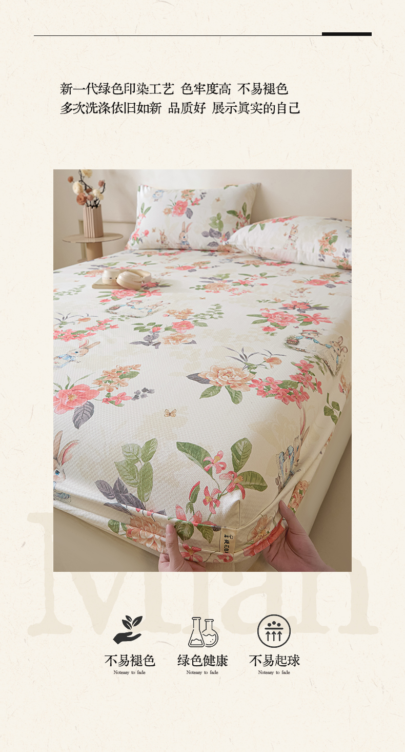 • 91家纺网 家纺一手货源 找家纺 涵宸家纺 2026新款全棉提花老粗布-单床笠 床笠-兔伴花