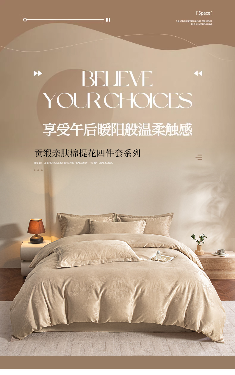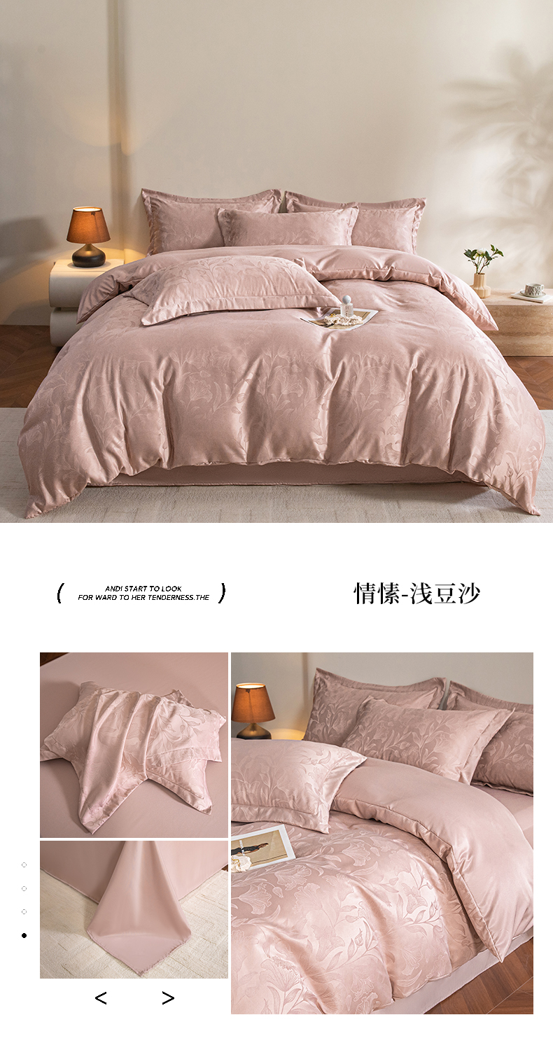 (总)金牛座家纺 2026新款高克重贡缎提花亲肤棉四件套-情愫系列,情愫-灰,情愫-奶白,情愫-浅豆沙,情愫-浅紫,情愫-香槟