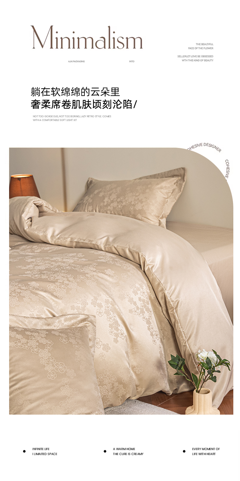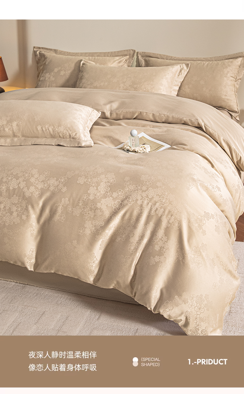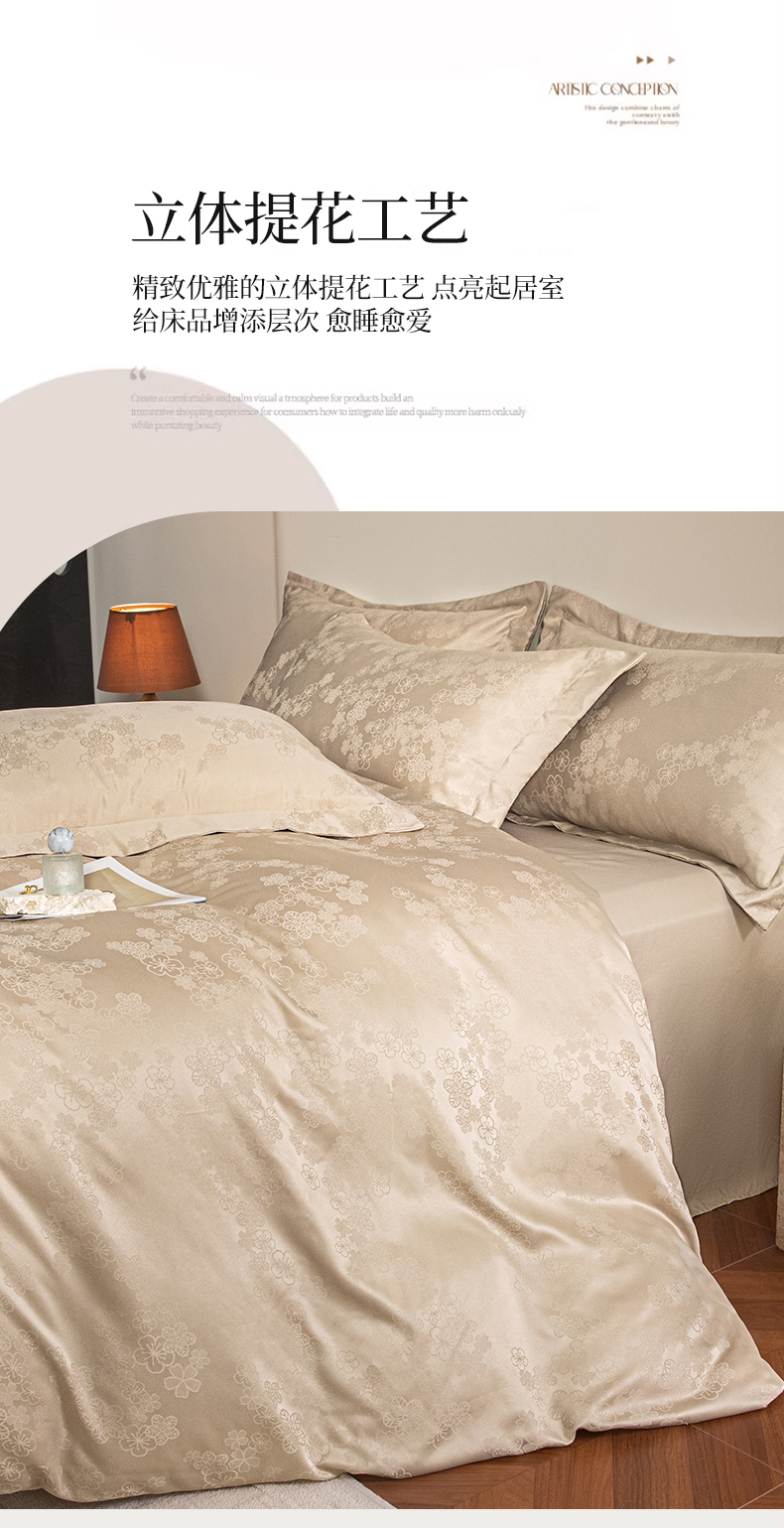 金牛座家纺 2026新款高克重贡缎提花亲肤棉四件套系列 芬芳-香槟