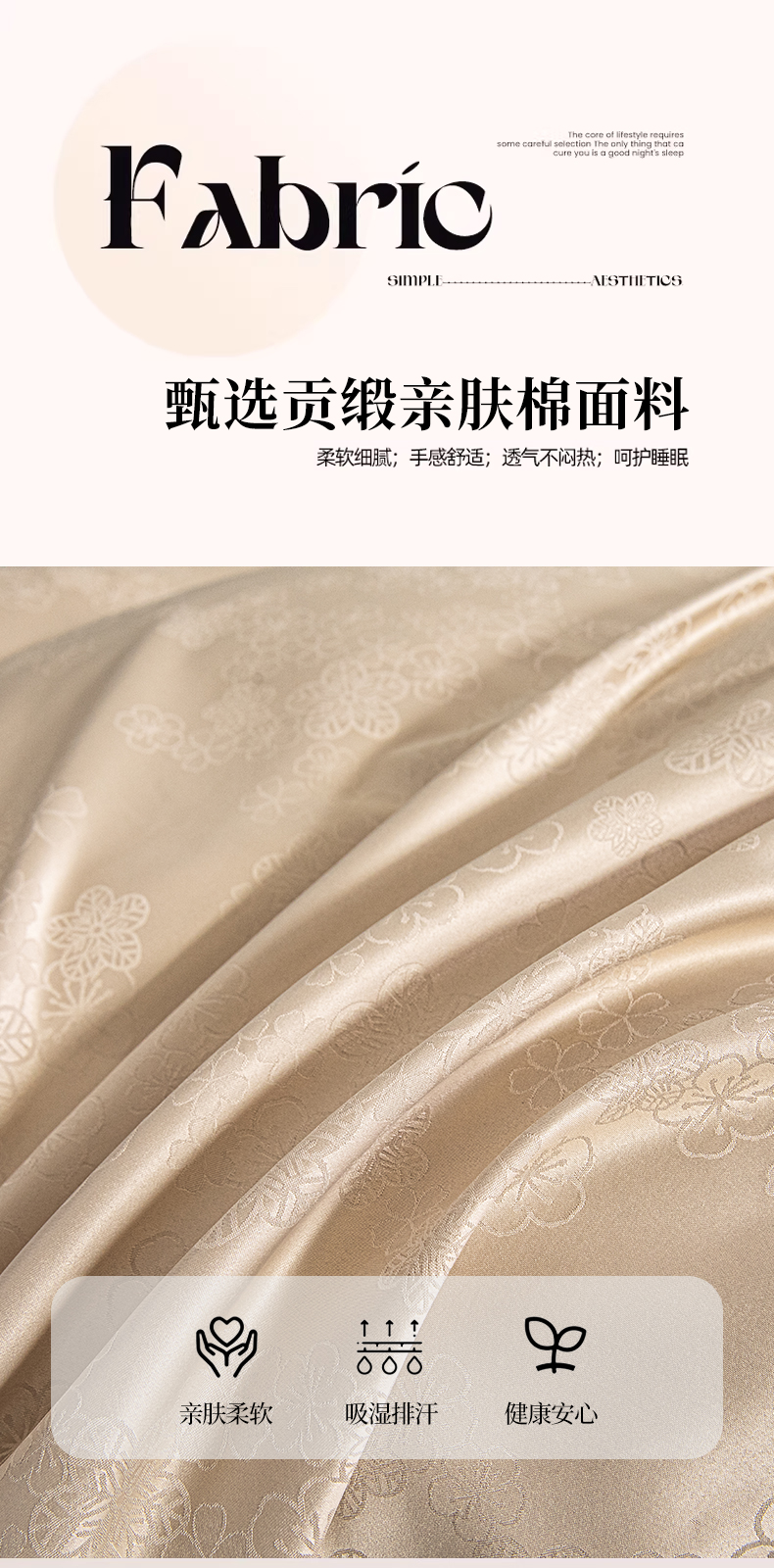 商品名称:金牛座家纺 2026新款高克重贡缎提花亲肤棉四件套系列 芬芳-香槟