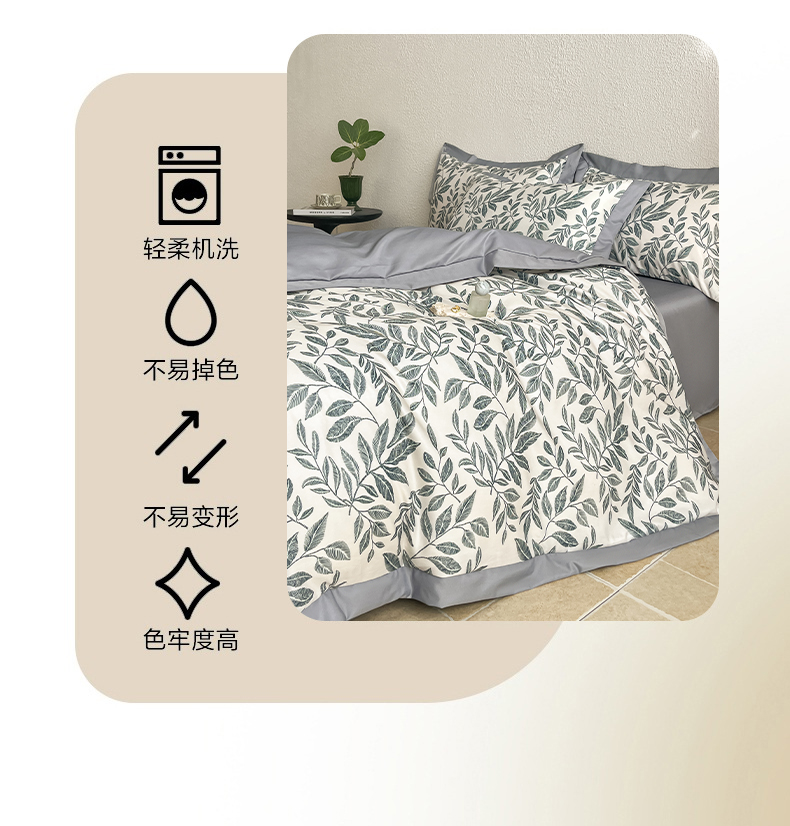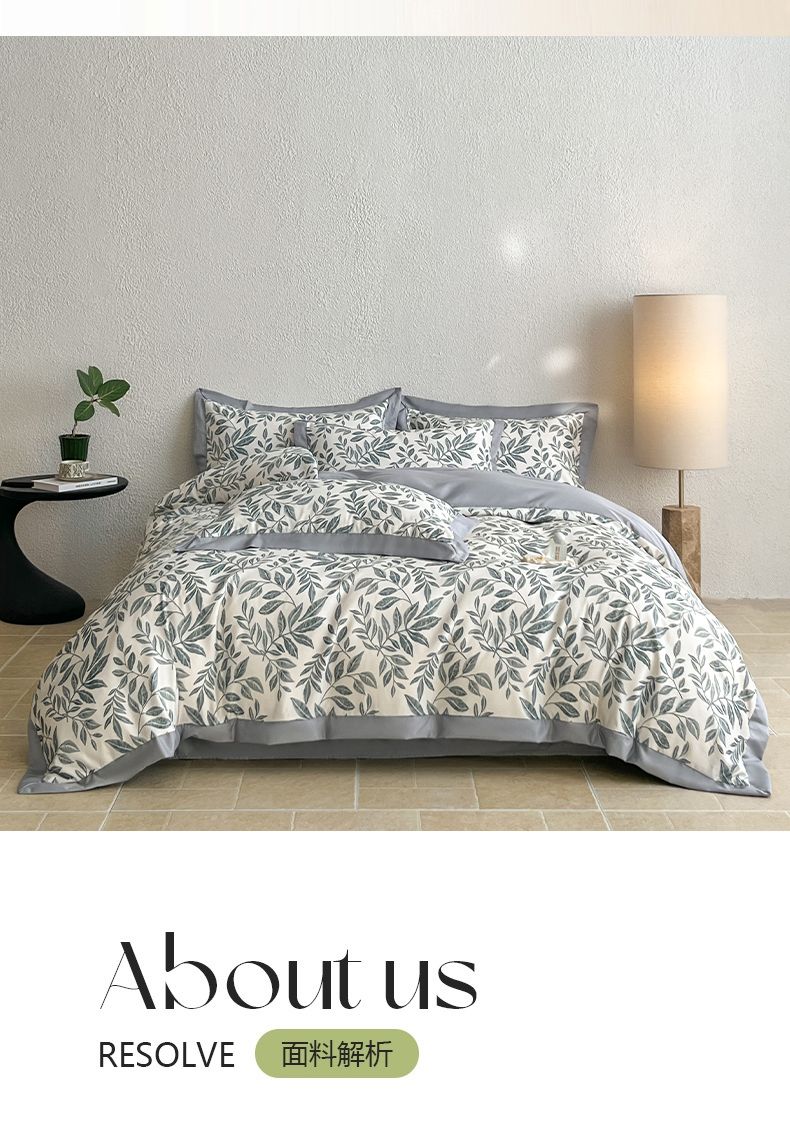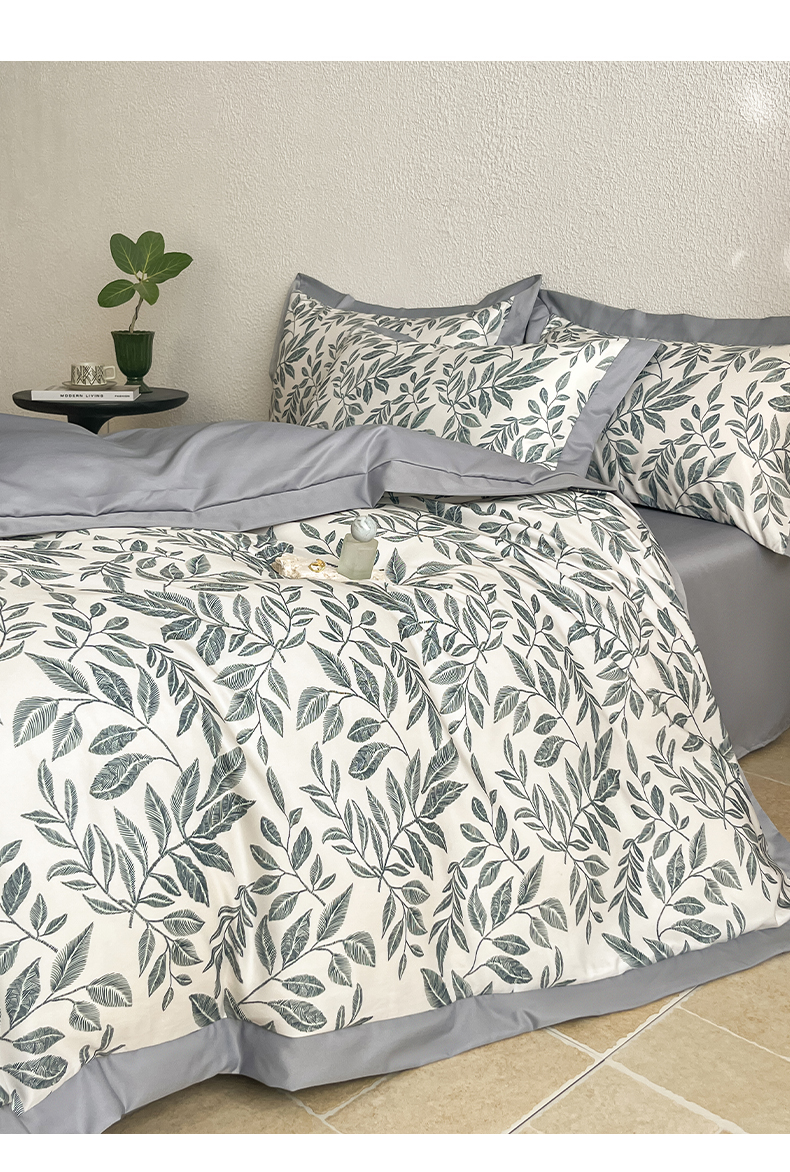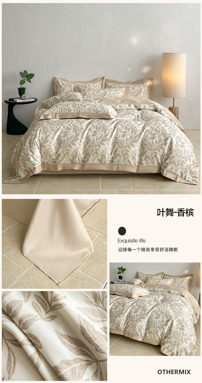(总)金牛座家纺 2026新款高克重细斜纹丝柔质感亲肤数码印花宽边四件套-叶舞系列,叶舞-橄榄绿,叶舞-灰,叶舞-精致蓝,叶舞-浅豆沙,叶舞-香槟