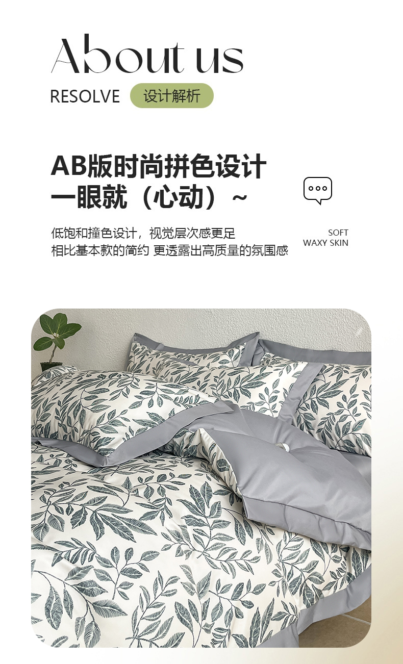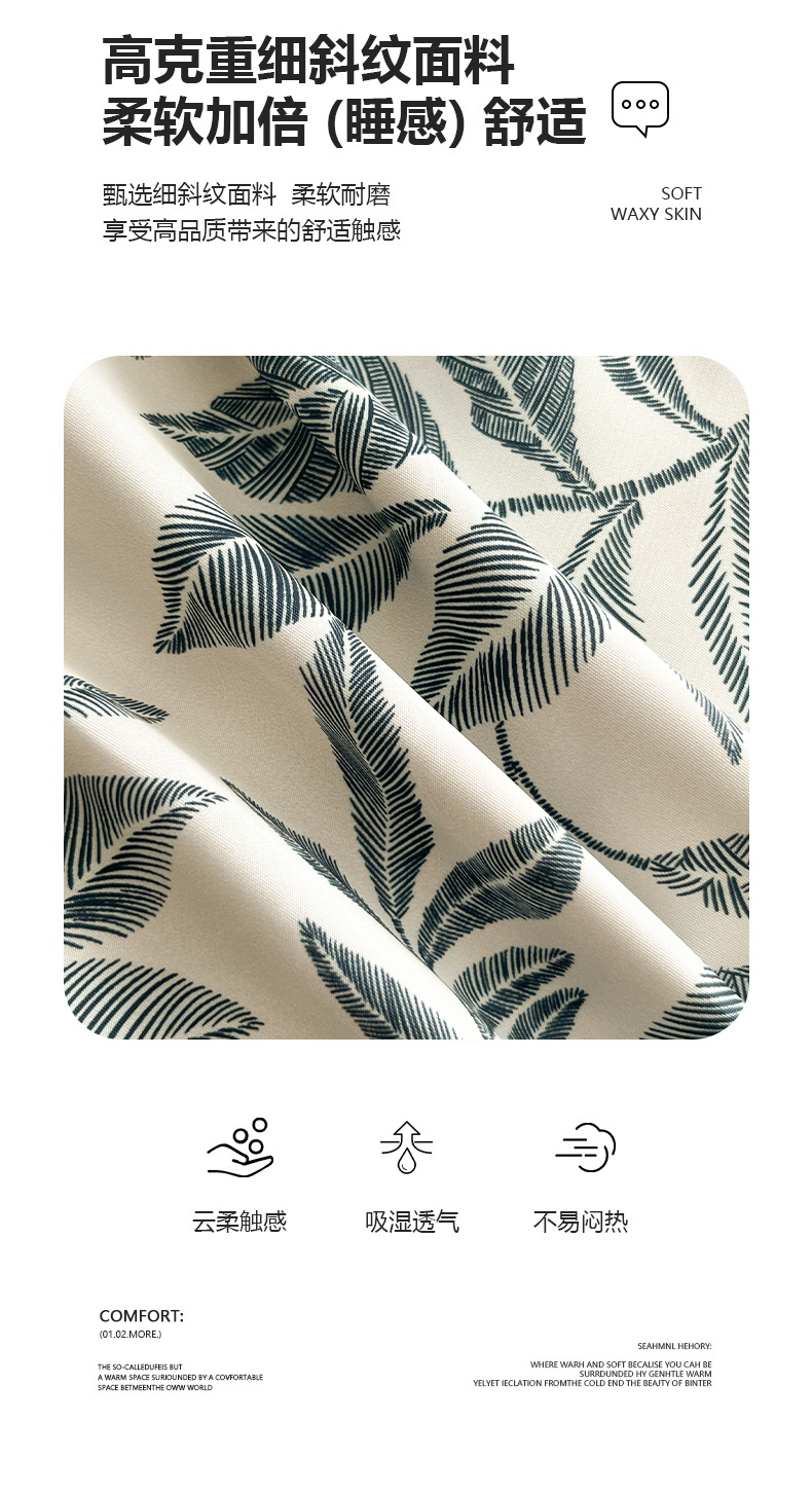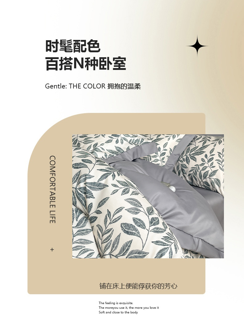 (总)金牛座家纺 2026新款高克重细斜纹丝柔质感亲肤数码印花宽边四件套-叶舞系列,叶舞-橄榄绿,叶舞-灰,叶舞-精致蓝,叶舞-浅豆沙,叶舞-香槟