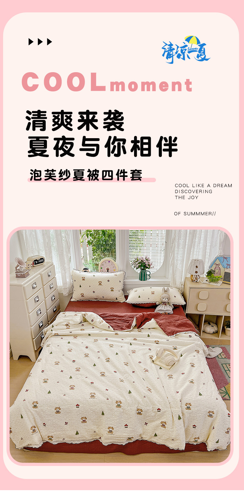 (总)金梦拉家纺 2026春夏新款云感双层纱皱皱纱系列四件套,爱心小兔,芭宠假日蓝,白桃乌龙,宝莉粉,波点熊,春日铃兰,丛林兔,花畔里,凯特蓝,可爱熊熊,蓝格蛋糕熊,萌萌小象,蜜桃草莓,茉莉清风,铅笔熊,清浅,森澜,碎花萌宠,夏日木槿,小福马,小马咖,栀夏,紫色风信,紫韵花茶