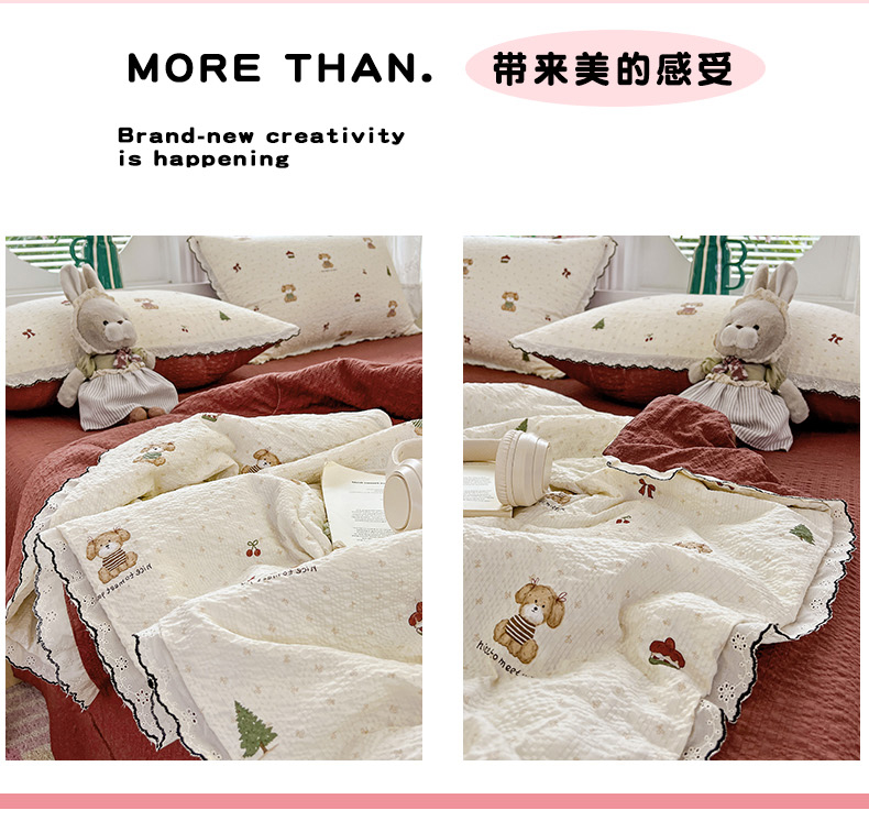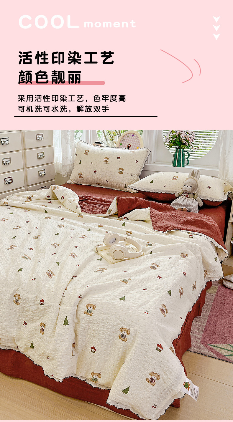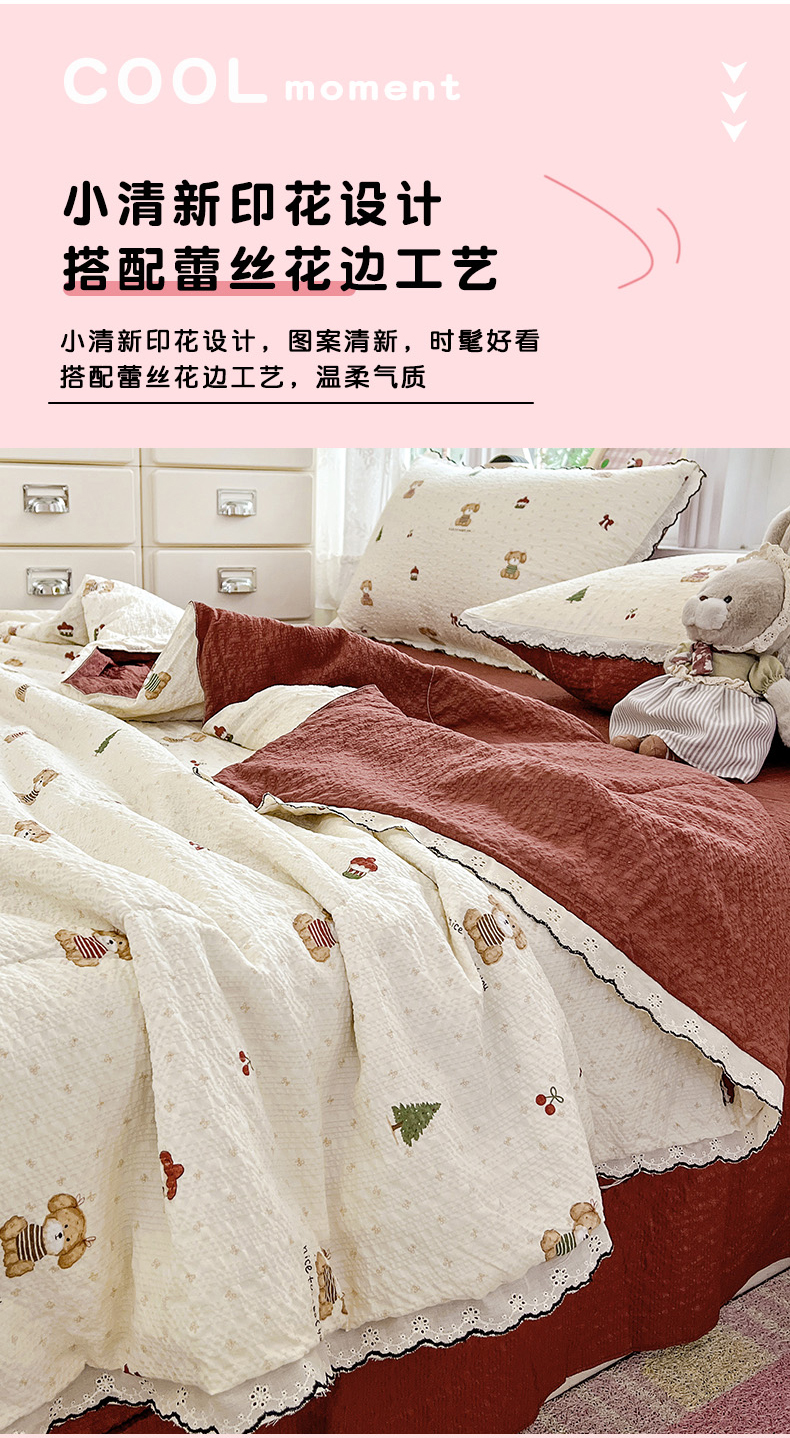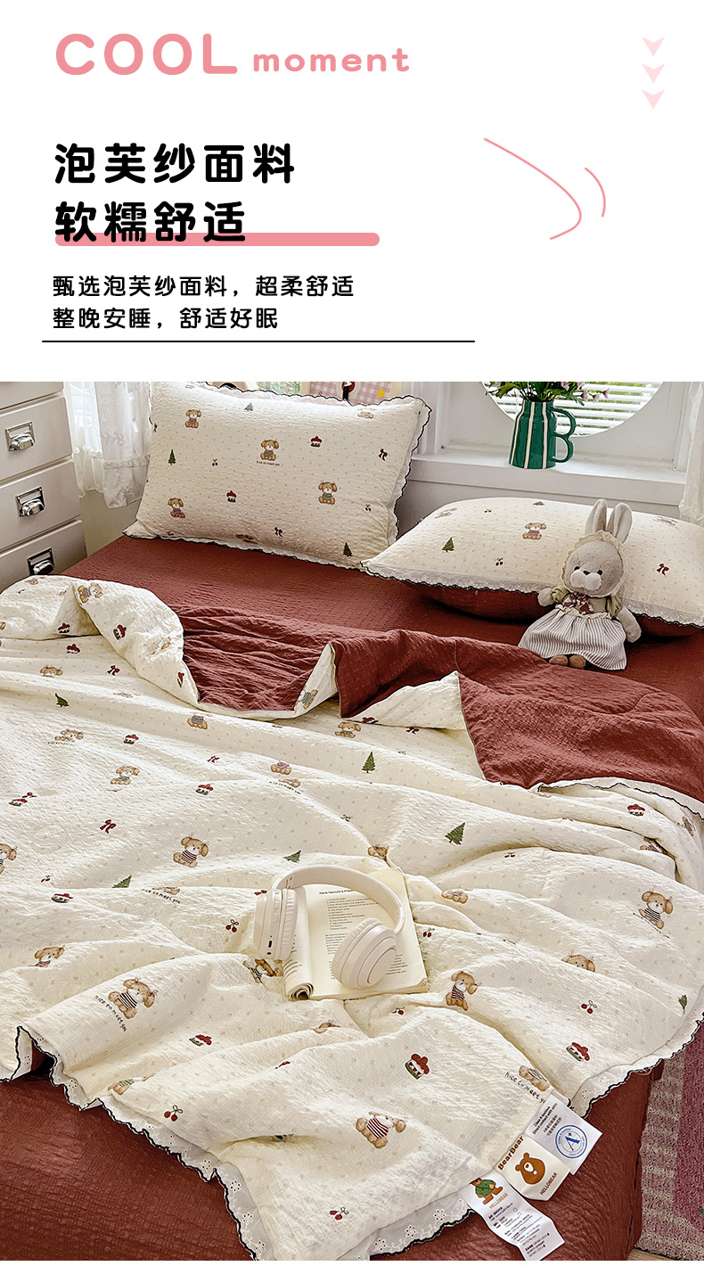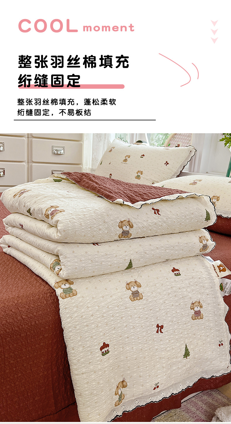 金梦拉家纺 2026新款泡芙纱全棉小黑花边夏被四件套 可爱泰迪