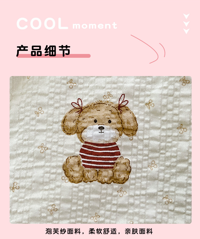 商品名称:金梦拉家纺 2026新款泡芙纱全棉小黑花边夏被四件套 可爱泰迪