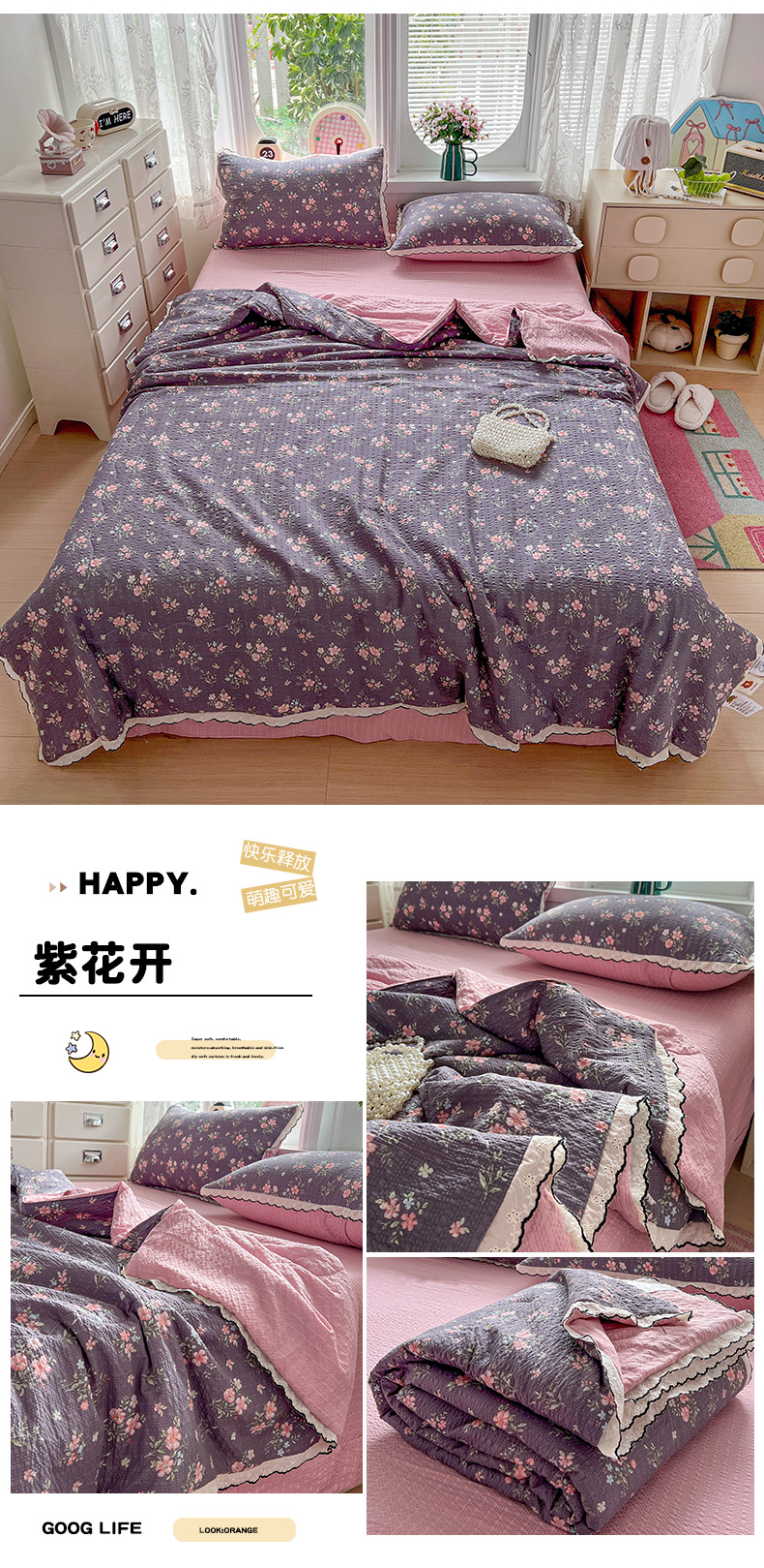 (总)金梦拉家纺 2025新款提花纱布棉双层纱皱皱纱四件套,微醺玫瑰,梦华录,花开半夏,漫山紫野,薄荷初夏,点点草莓,法式浪漫,粉杏绿,花颜,惠心,桔梗紫,咖调蝴蝶结,快乐狗,梨落,林间兔,绿意,绿茵,满园春色,曼塔庄园,萌萌小兔,雾野山茶,小野菊,寻春,樱桃,月梨漫香,芝士黄,枝蔓绿,紫线调,紫樱落