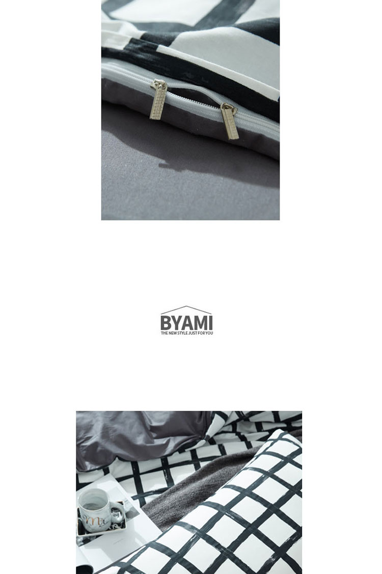 (总)梦家居 2024新款全棉13372简约小清新四件套,彩虹条纹,墨竹—黑色,墨竹—米色