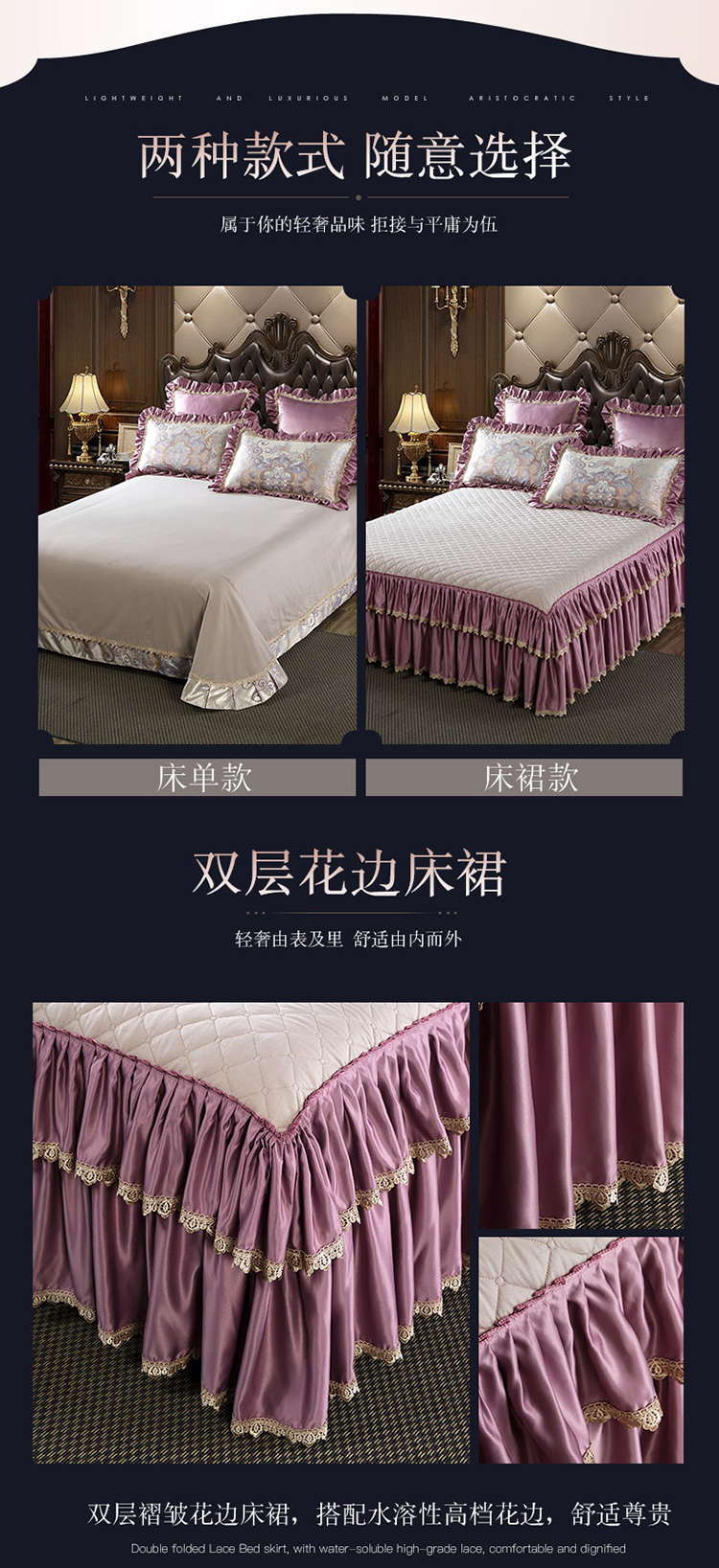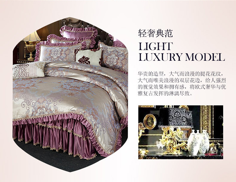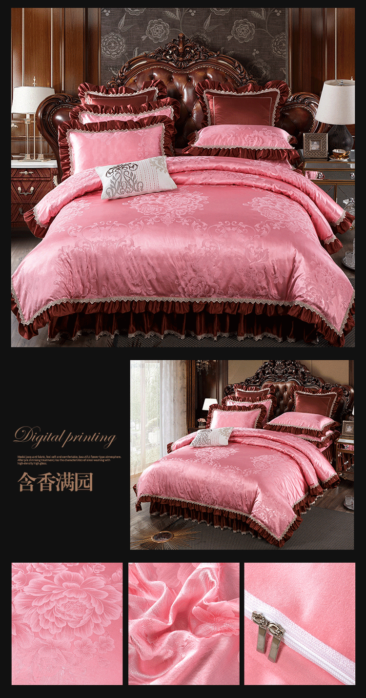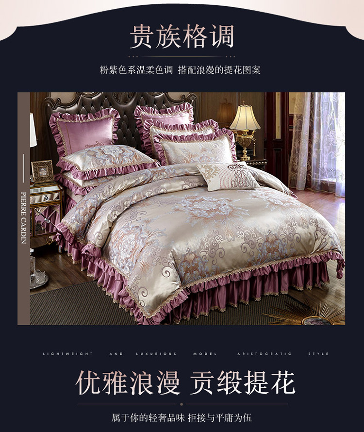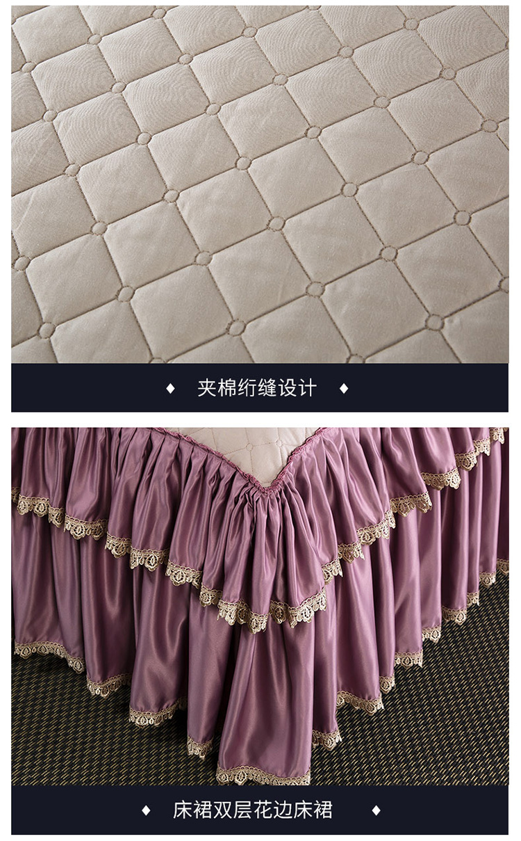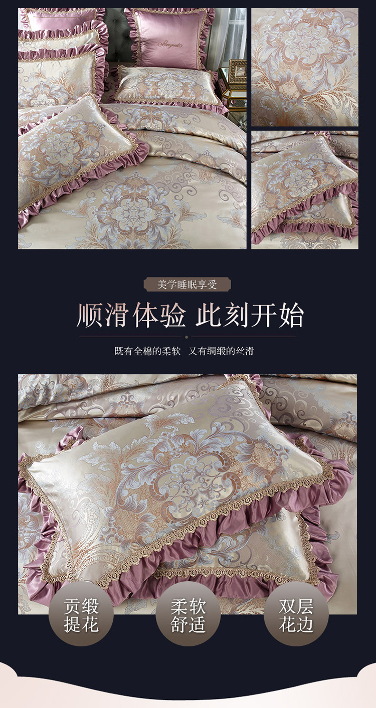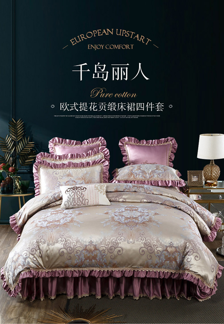兴美佳欧式提花贡缎双层花边夹棉床单床裙四件套千岛丽人
